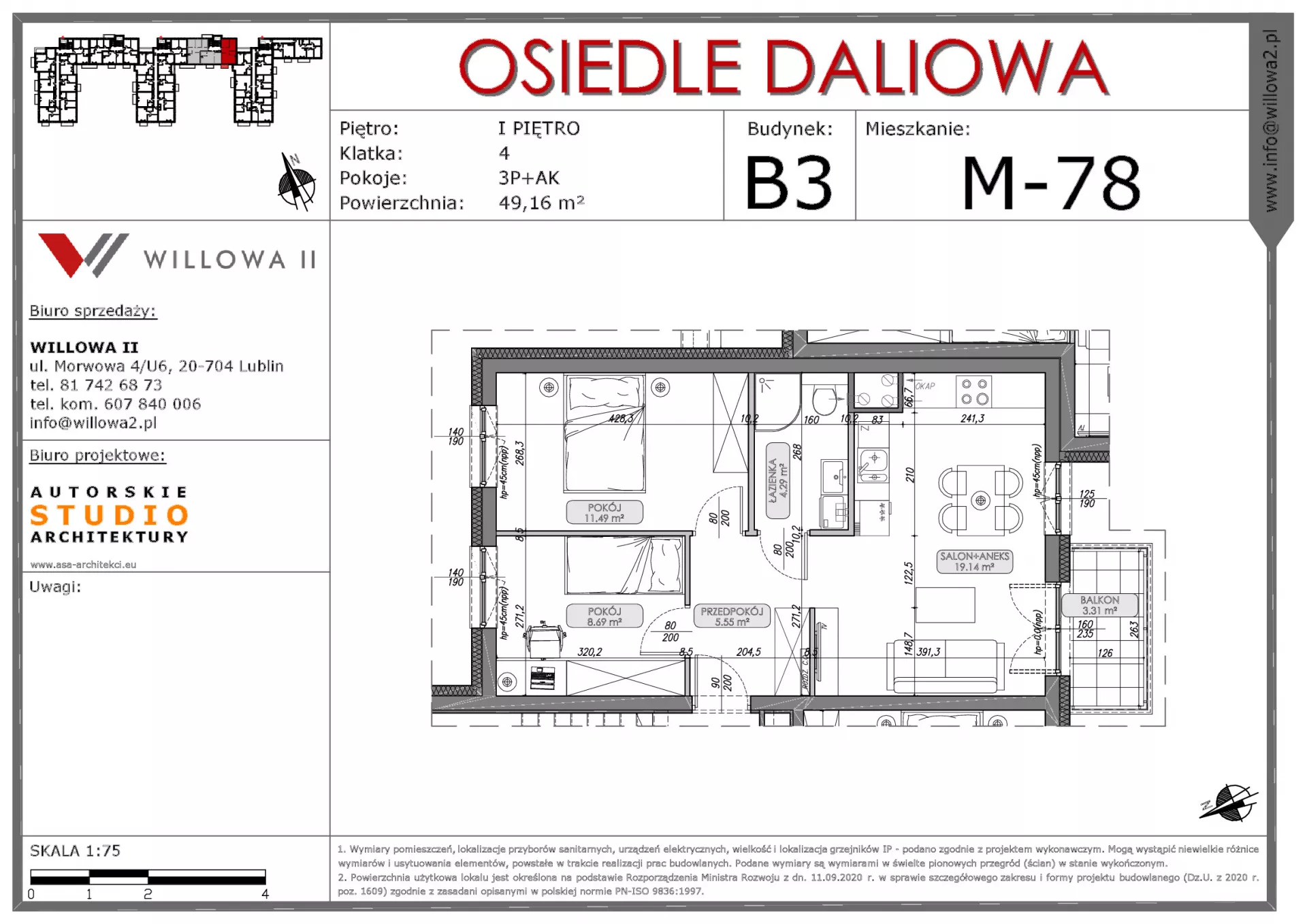 Udogodnienia: nowoczesna inwestycja, winda, wykorzystanie energooszczędnych materiałów, certyfikowany plac zabaw, miejsca postojowe na rowery, tereny zielone, blisko centrum miasta i komunikacji miejskiej; w pobliżu znajdują się sklepy wielometrażowe, galeria Olimp, przedszkole, szkoła podstawowa, punkty gastronomiczne i usługowe, służba zdrowia; spokojna okolica Przynależności: balkon, ogródek, komórka lokatorska Bezpieczeństwo: drzwi antywłamaniowe, wideodomofon Wielkość Projektu: 118 mieszkań Garaże: Na terenie inwestycji powstaje garaż podziemny oraz na ulicy powstaną dodatkowe miejsca postojowe Komunikacja: w pobliżu inwestycji znajduje się sieć przystanków autobusowych Odległość od Centrum: 4 km