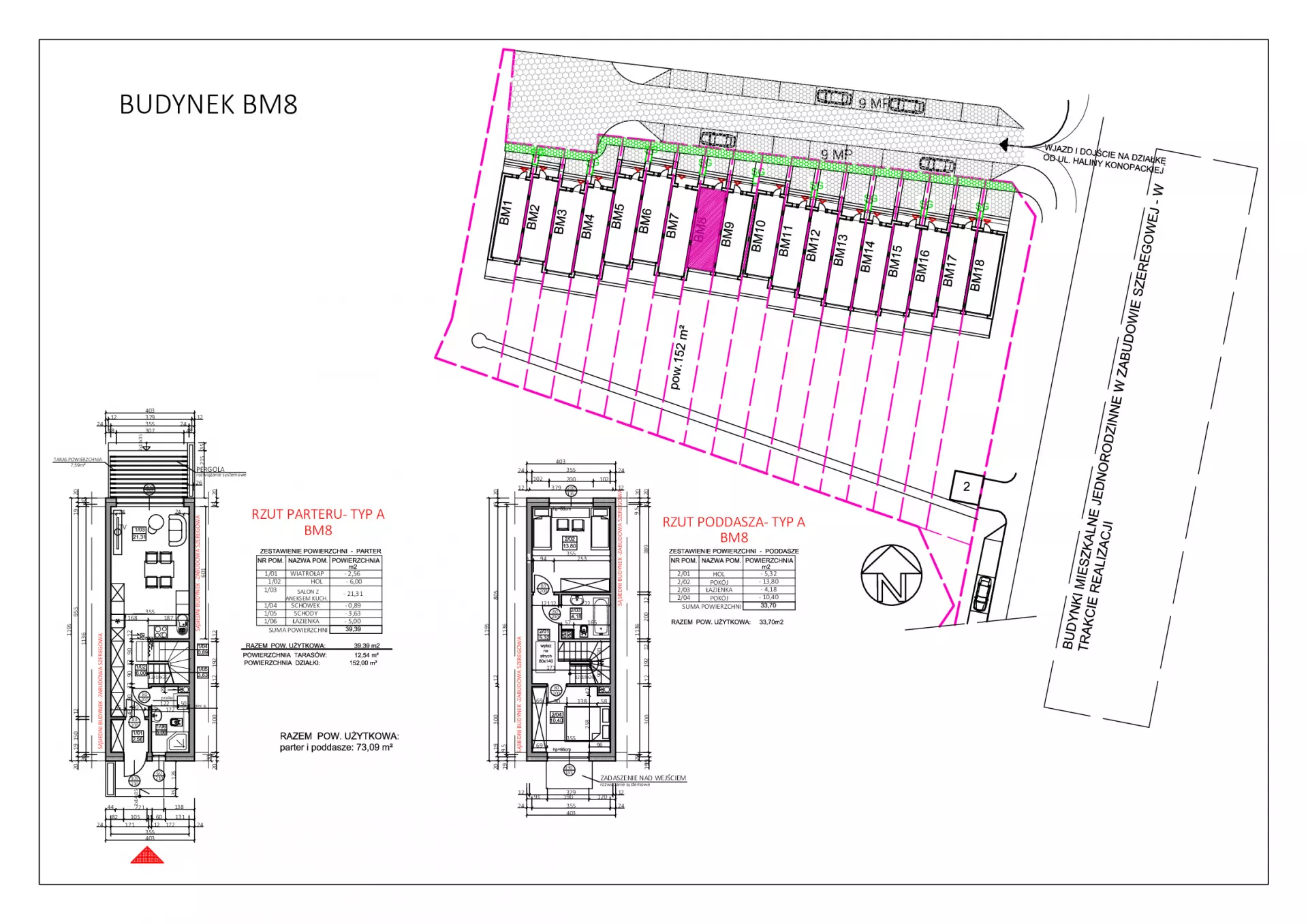 Udogodnienia: Brama garażowa sterowana automatycznie, internet światłowodowy. Przynależności: Mieszkania posiadają ogród lub balkon. Bezpieczeństwo: Domofon, Wielkość Projektu: Inwestycja składa się z 10 domów jednorodzinnych w zabudowie dwu-lokalowej. Garaże: W inwestycji będą dostępne miejsca postojowe. Komunikacja: Autobus 300 metrów. Odległość od Centrum: 1,2 km