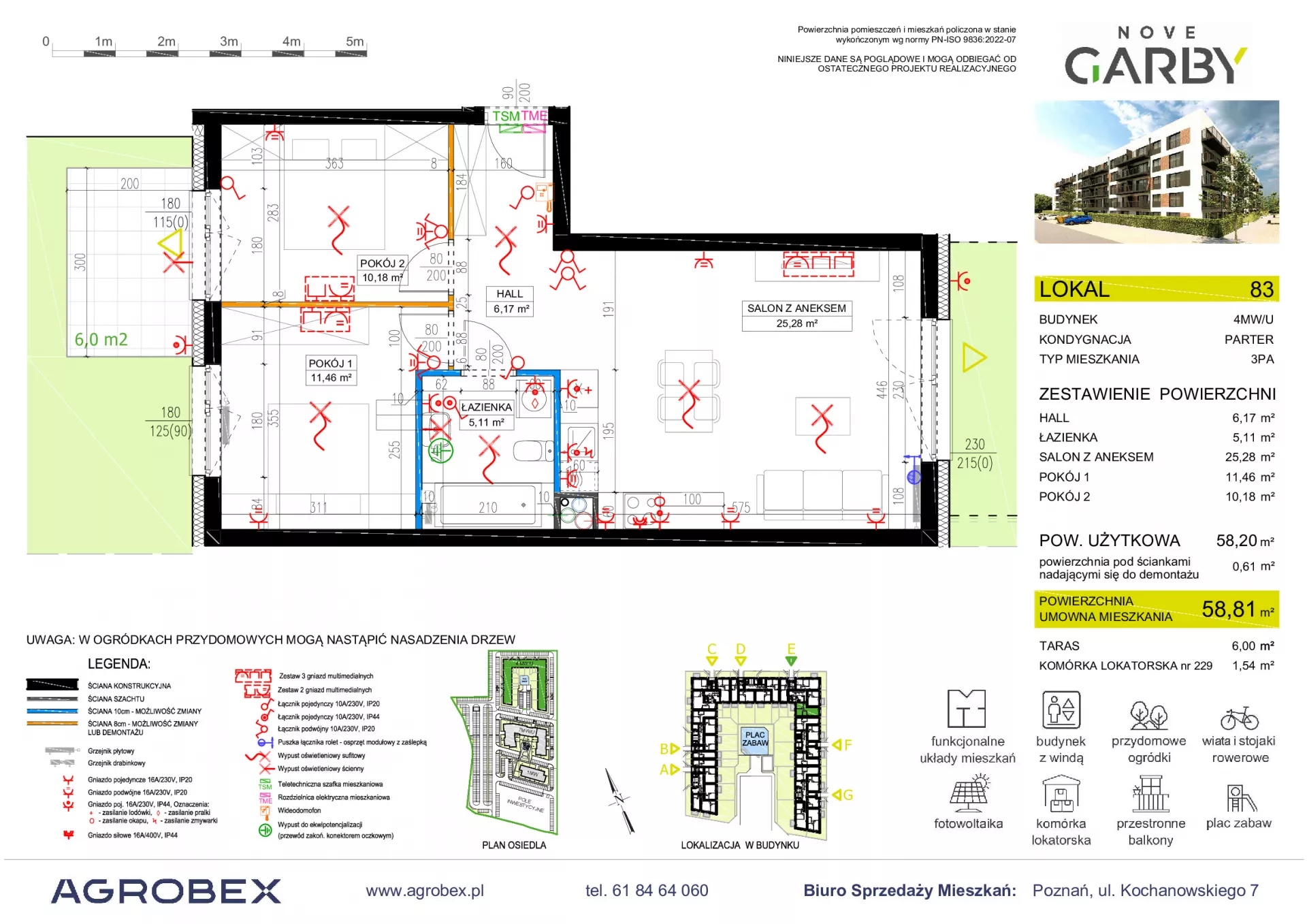 Udogodnienia: plac zabaw, wiaty i stojaki na rowery, dogodnie rozbudowana sieć transportu miejskiego; w okolicy bliskość terenów zielonych - Las przy Swarzędzu, Jezioro Swarzędzkie oraz punktów handlowo-usługowych Przynależności: prywatny ogródek, taras Bezpieczeństwo: domofon Wielkość Projektu: 143 mieszkań Garaże: Deweloper przewidział indywidualne i ogólnodostępne naziemne miejsca postojowe Komunikacja: przystanek autobusowy 2 minuty pieszo od inwestycji Odległość od Centrum: 14,3 km