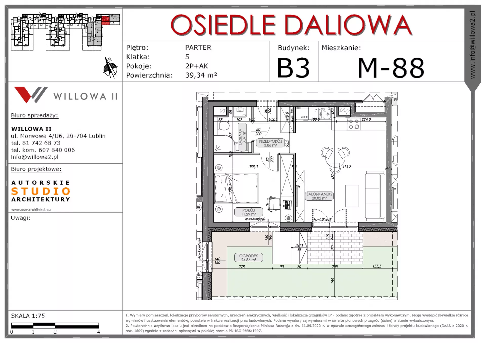 Udogodnienia: nowoczesna inwestycja, winda, wykorzystanie energooszczędnych materiałów, certyfikowany plac zabaw, miejsca postojowe na rowery, tereny zielone, blisko centrum miasta i komunikacji miejskiej; w pobliżu znajdują się sklepy wielometrażowe, galeria Olimp, przedszkole, szkoła podstawowa, punkty gastronomiczne i usługowe, służba zdrowia; spokojna okolica Przynależności: balkon, ogródek, komórka lokatorska Bezpieczeństwo: drzwi antywłamaniowe, wideodomofon Wielkość Projektu: 118 mieszkań Garaże: Na terenie inwestycji powstaje garaż podziemny oraz na ulicy powstaną dodatkowe miejsca postojowe Komunikacja: w pobliżu inwestycji znajduje się sieć przystanków autobusowych Odległość od Centrum: 4 km