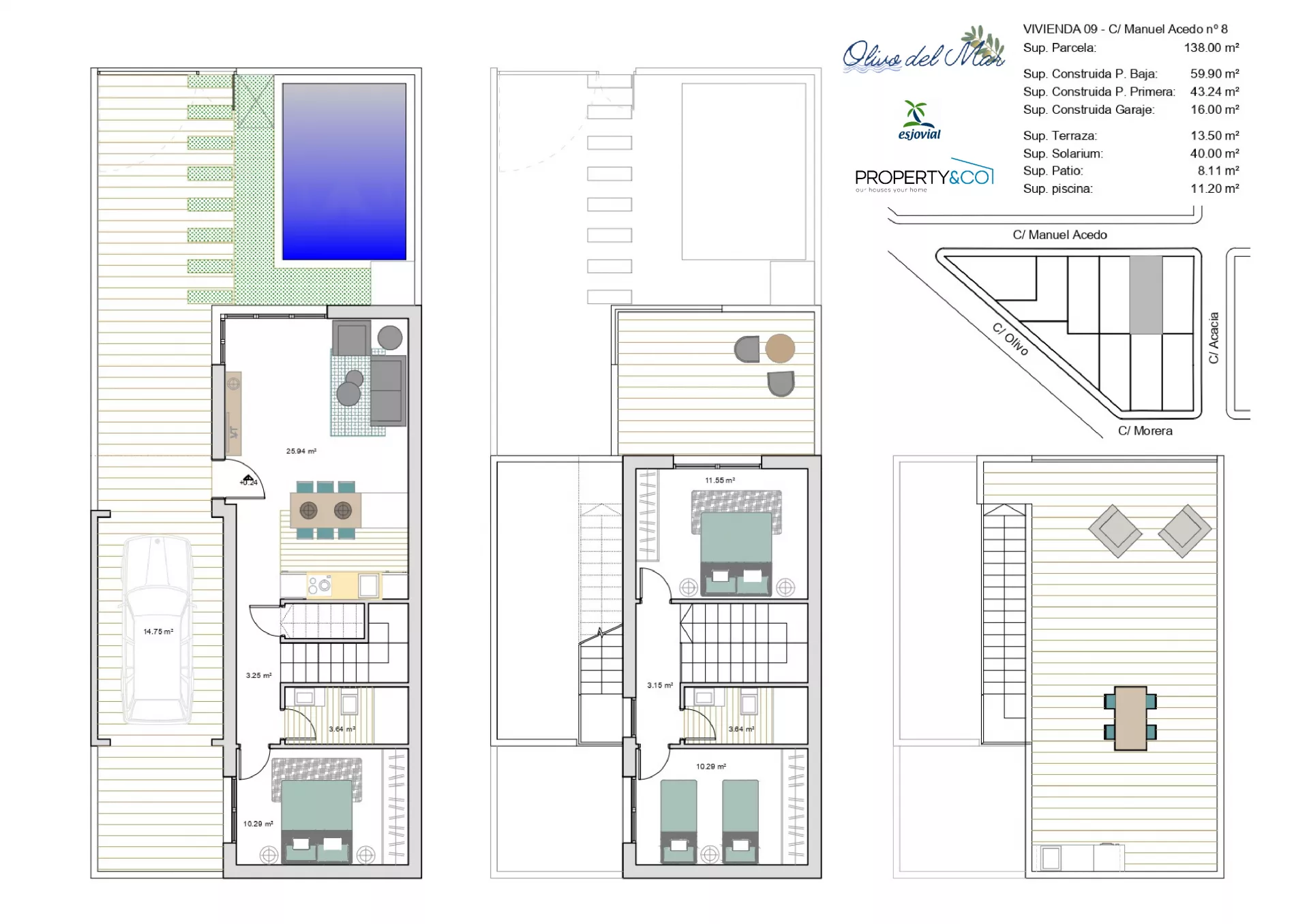 Opis: Olivo del Mar to luksusowy kompleks 10 willi z prywatnymi basenami i zadaszonymi miejscami garażowymi na posesjach. Kompleks znajduje się w otoczeniu wszystkich usług, obiektów sportowych, w niewielkiej odległości znajdują się znane pola golfowe jak min. Roda Golf, La Serena Golf, Mar Menor Golf. Wille posiadają trzy sypialnie i dwie łazienki oraz duże górne tarasy.