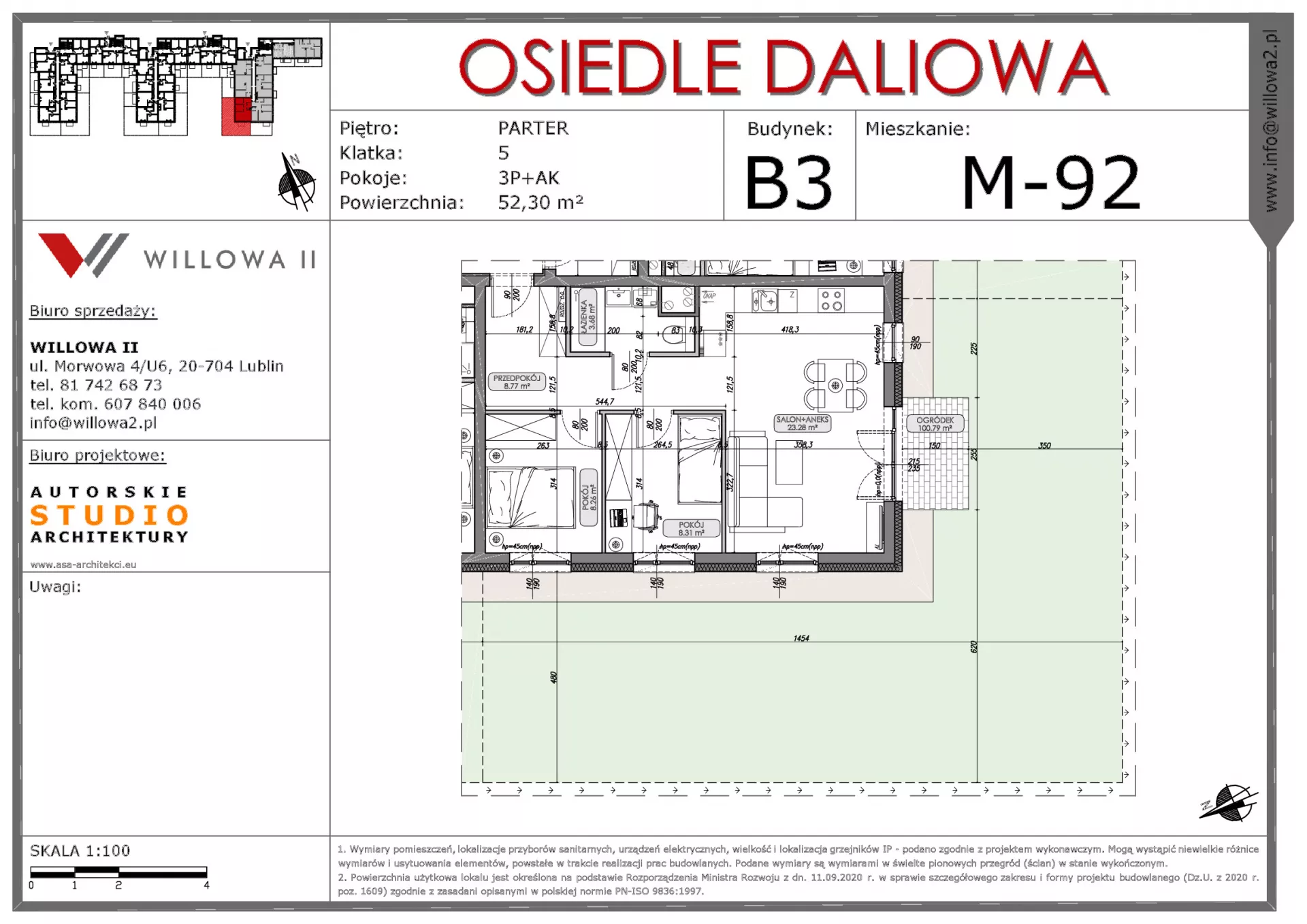 Udogodnienia: nowoczesna inwestycja, winda, wykorzystanie energooszczędnych materiałów, certyfikowany plac zabaw, miejsca postojowe na rowery, tereny zielone, blisko centrum miasta i komunikacji miejskiej; w pobliżu znajdują się sklepy wielometrażowe, galeria Olimp, przedszkole, szkoła podstawowa, punkty gastronomiczne i usługowe, służba zdrowia; spokojna okolica Przynależności: balkon, ogródek, komórka lokatorska Bezpieczeństwo: drzwi antywłamaniowe, wideodomofon Wielkość Projektu: 118 mieszkań Garaże: Na terenie inwestycji powstaje garaż podziemny oraz na ulicy powstaną dodatkowe miejsca postojowe Komunikacja: w pobliżu inwestycji znajduje się sieć przystanków autobusowych Odległość od Centrum: 4 km