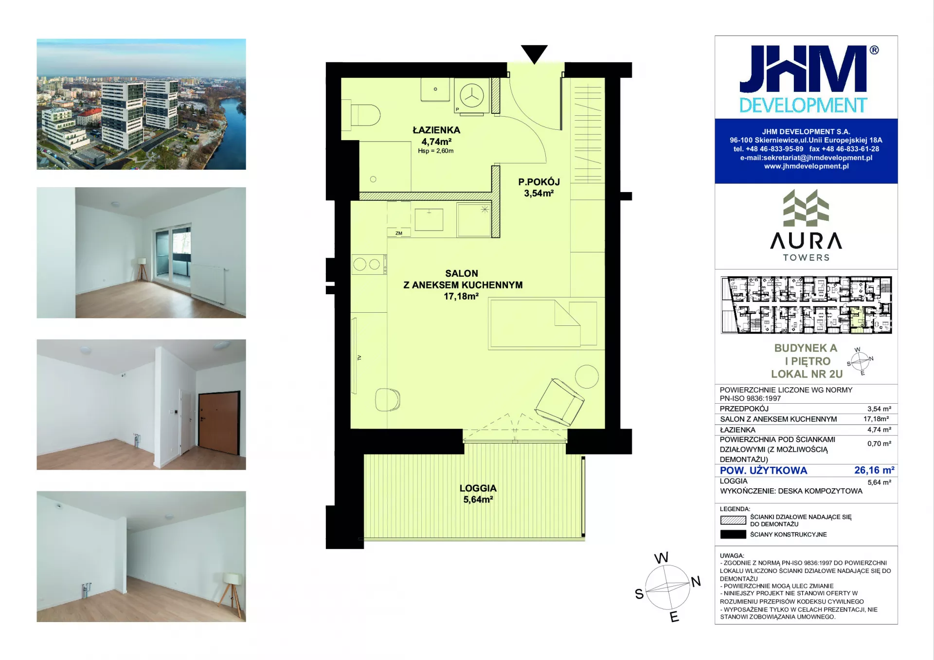 Opis: Zapraszamy do zapoznania się z ofertą lokali usługowych w budynku A Aura Towers. Wejście do budynku znajduje się bezpośrednio przy ulicy Fordońskiej, kilka metrów od przystanku autobusowego i tramwajowego. Wszystkie lokale są wykończone pod klucz. Istnieje możliwość odliczenia 23% podatku VAT. Udogodnienia: winda, plac zabaw oraz sala zabaw dla dzieci, tereny zielone wokół inwestycji, blisko komunikacji miejskiej i centrum miasta, stacja dla rowerów, ścieżki spacerowe prowadzące nad rzekę Brdę Przynależności: loggia, taras, miejsce postojowe Bezpieczeństwo: drzwi antywłamaniowe, wideodomofon, monitoring, teren zamknięty Wielkość Projektu: 280 mieszkań Garaże: Tylko dla 2 pokojowych i większych lokali. Komunikacja: tramwaj 150 m, autobus 700 m Odległość od Centrum: 2,2 km