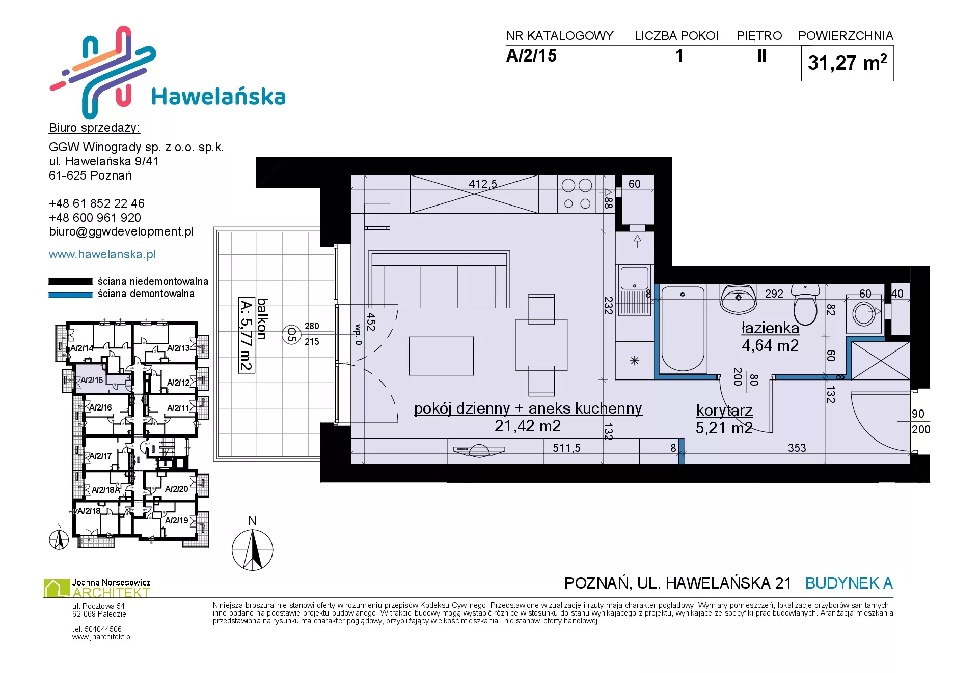 Udogodnienia: tereny zielone, blisko komunikacji miejskiej, plac zabaw dla dzieci, rowerownia Przynależności: taras, loggia, balkon, miejsce postojowe, komórka lokatorska Bezpieczeństwo: drzwi antywłamaniowe, domofon, teren ogrodzony Wielkość Projektu: 126 lokali mieszkalnych Garaże: Deweloper przewidział miejsca postojowe naziemne oraz dwupoziomową halę garażową dla mieszkańców inwestycji. Komunikacja: przystanek autobusowy 300 m; przystanek tramwajowy 350 m Odległość od Centrum: Inwestycja znajduje się w centrum miasta