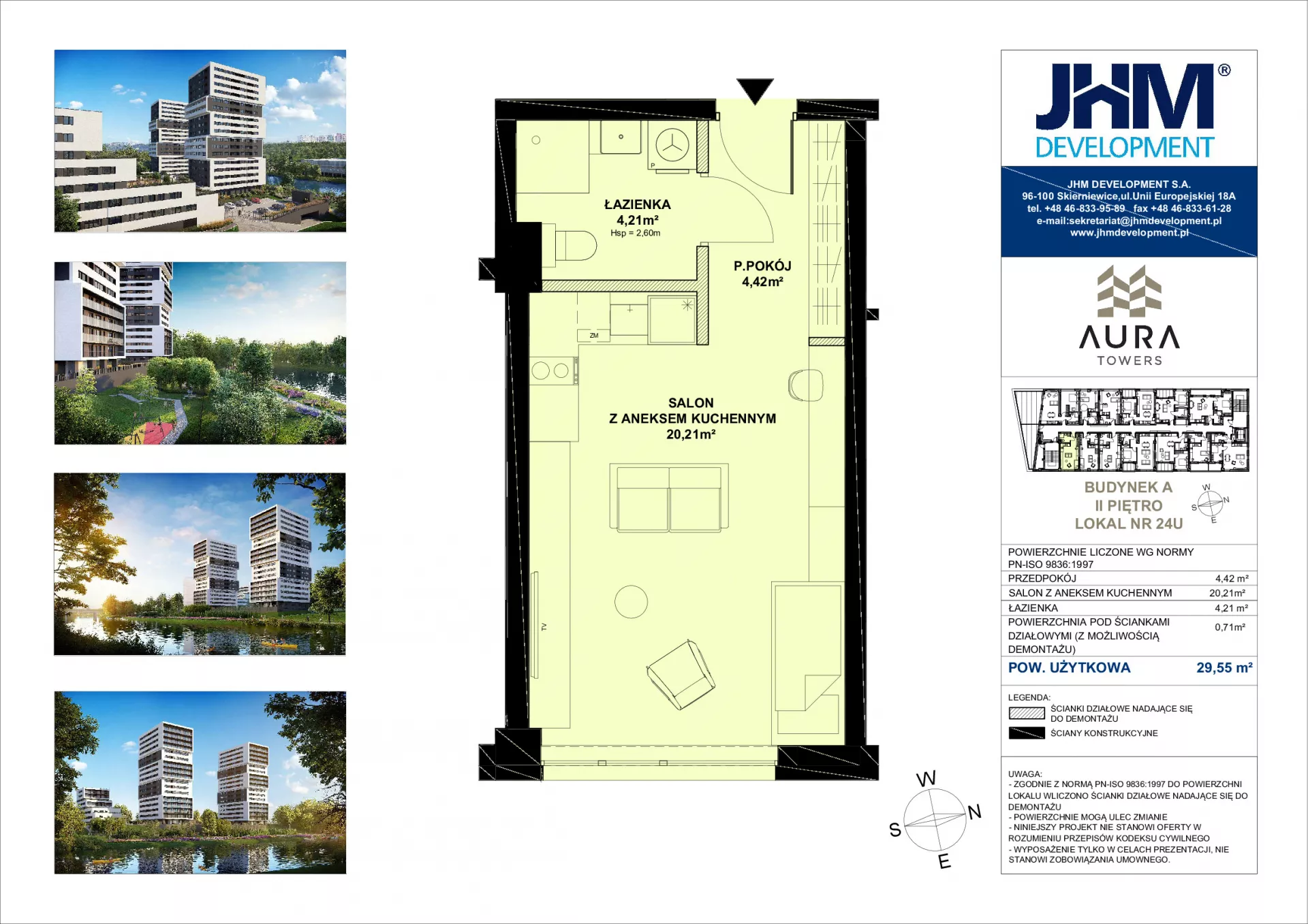 Opis: Zapraszamy do zapoznania się z ofertą lokali usługowych w budynku A Aura Towers. Wejście do budynku znajduje się bezpośrednio przy ulicy Fordońskiej, kilka metrów od przystanku autobusowego i tramwajowego. Wszystkie lokale są wykończone pod klucz. Istnieje możliwość odliczenia 23% podatku VAT. Udogodnienia: winda, plac zabaw oraz sala zabaw dla dzieci, tereny zielone wokół inwestycji, blisko komunikacji miejskiej i centrum miasta, stacja dla rowerów, ścieżki spacerowe prowadzące nad rzekę Brdę Przynależności: loggia, taras, miejsce postojowe Bezpieczeństwo: drzwi antywłamaniowe, wideodomofon, monitoring, teren zamknięty Wielkość Projektu: 280 mieszkań Garaże: Tylko dla 2 pokojowych i większych lokali. Komunikacja: tramwaj 150 m, autobus 700 m Odległość od Centrum: 2,2 km