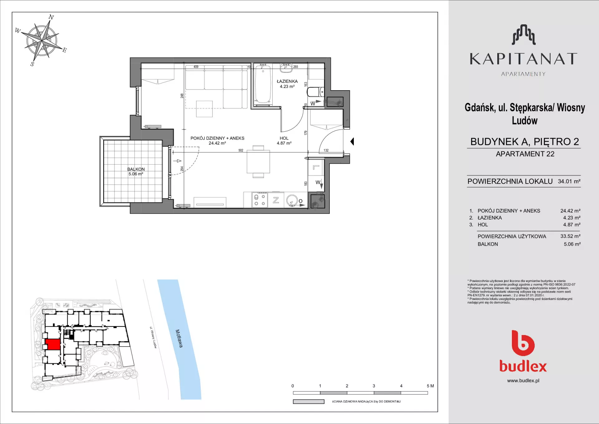 Udogodnienia: winda, wysoki standard wykończenia, komórki lokatorskie, tereny zielone wokół budynku, plac zabaw dla dzieci, blisko centrum i komunikacji miejskiej; w pobliżu znajduje się Promenada, tramwaj wodny na rzece Motława, Muzeum II Wojny Światowej, restauracje, sklepy spożywcze i punkty usługowe Przynależności: taras, balkon Bezpieczeństwo: drzwi antywłamaniowe, wideodomofon, monitoring Wielkość Projektu: 51 mieszkań Garaże: Na terenie inwestycji powstanie 51 miejsc parkingowych Komunikacja: autobus 550 m; tramwaj 1,6 km; Dworzec Główny PKP 2,2 km Odległość od Centrum: 2,2 km
