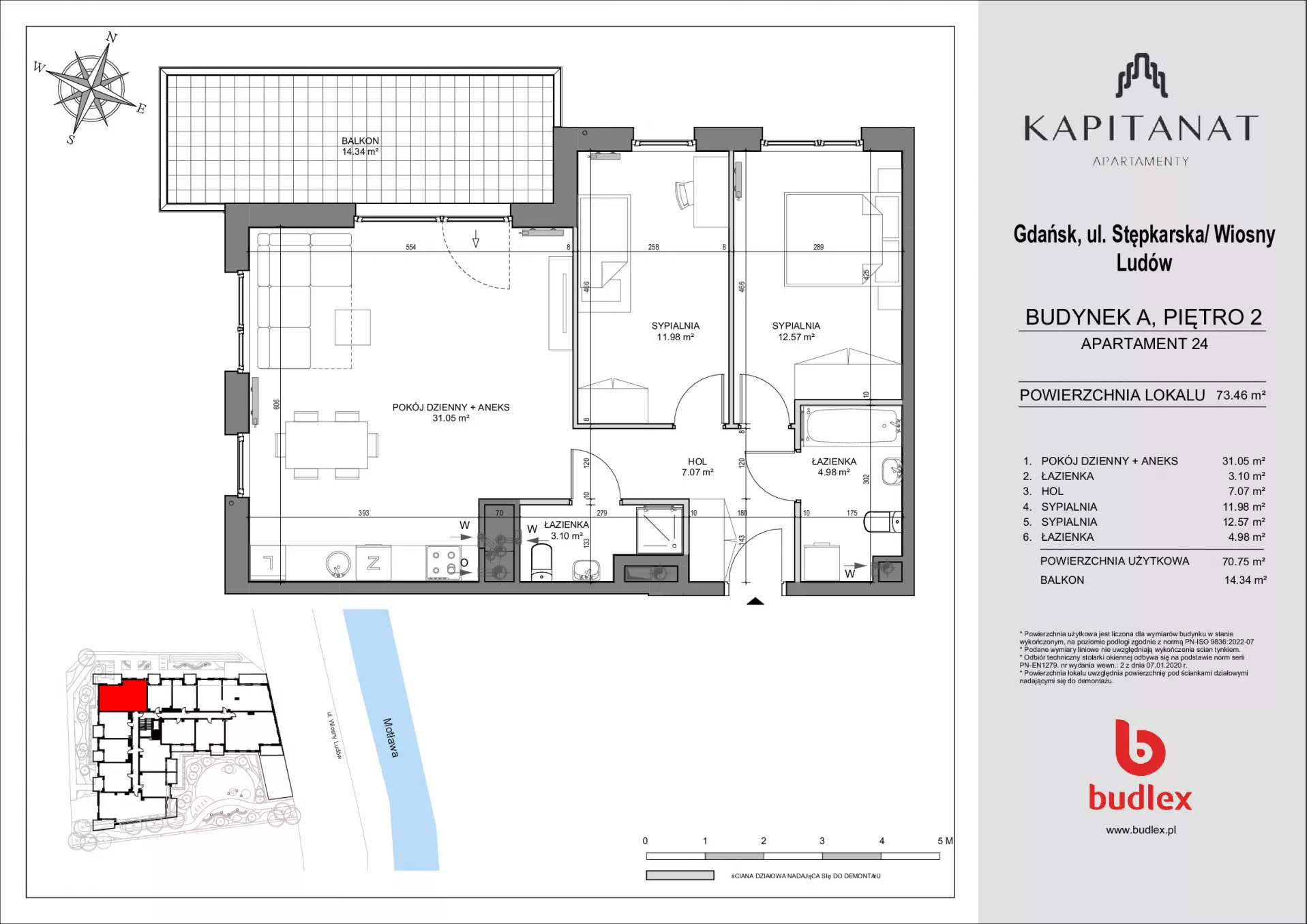 Udogodnienia: winda, wysoki standard wykończenia, komórki lokatorskie, tereny zielone wokół budynku, plac zabaw dla dzieci, blisko centrum i komunikacji miejskiej; w pobliżu znajduje się Promenada, tramwaj wodny na rzece Motława, Muzeum II Wojny Światowej, restauracje, sklepy spożywcze i punkty usługowe Przynależności: taras, balkon Bezpieczeństwo: drzwi antywłamaniowe, wideodomofon, monitoring Wielkość Projektu: 51 mieszkań Garaże: Na terenie inwestycji powstanie 51 miejsc parkingowych Komunikacja: autobus 550 m; tramwaj 1,6 km; Dworzec Główny PKP 2,2 km Odległość od Centrum: 2,2 km