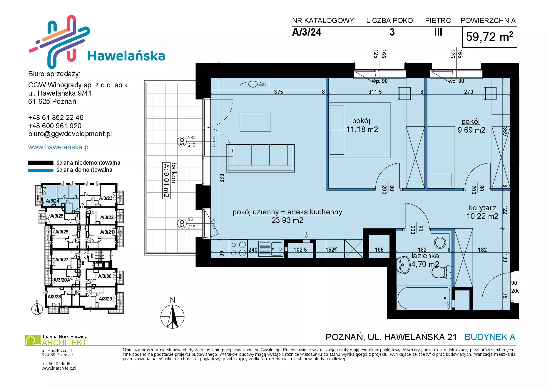 Udogodnienia: tereny zielone, blisko komunikacji miejskiej, plac zabaw dla dzieci, rowerownia Przynależności: taras, loggia, balkon, miejsce postojowe, komórka lokatorska Bezpieczeństwo: drzwi antywłamaniowe, domofon, teren ogrodzony Wielkość Projektu: 126 lokali mieszkalnych Garaże: Deweloper przewidział miejsca postojowe naziemne oraz dwupoziomową halę garażową dla mieszkańców inwestycji. Komunikacja: przystanek autobusowy 300 m; przystanek tramwajowy 350 m Odległość od Centrum: Inwestycja znajduje się w centrum miasta