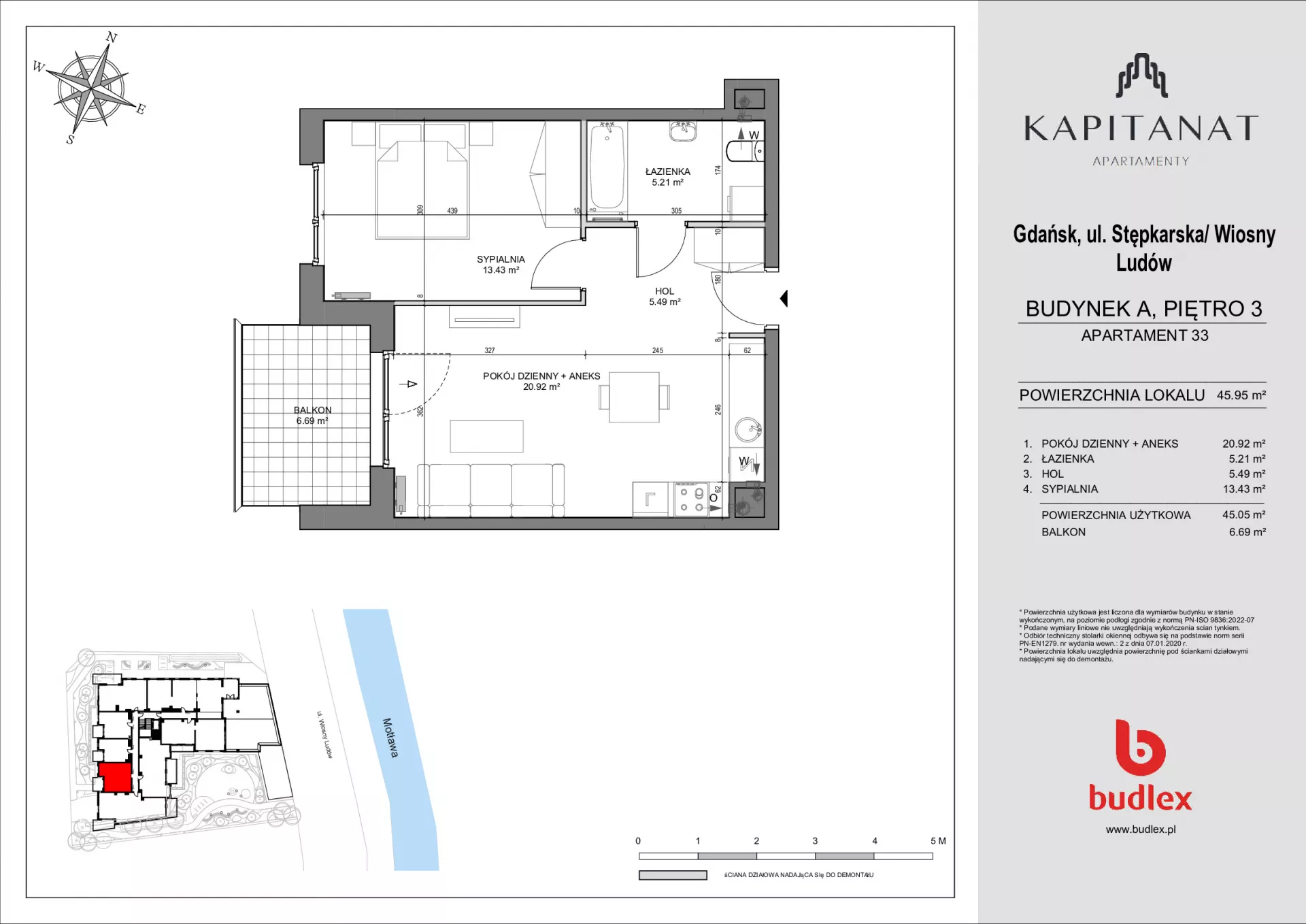 Udogodnienia: winda, wysoki standard wykończenia, komórki lokatorskie, tereny zielone wokół budynku, plac zabaw dla dzieci, blisko centrum i komunikacji miejskiej; w pobliżu znajduje się Promenada, tramwaj wodny na rzece Motława, Muzeum II Wojny Światowej, restauracje, sklepy spożywcze i punkty usługowe Przynależności: taras, balkon Bezpieczeństwo: drzwi antywłamaniowe, wideodomofon, monitoring Wielkość Projektu: 51 mieszkań Garaże: Na terenie inwestycji powstanie 51 miejsc parkingowych Komunikacja: autobus 550 m; tramwaj 1,6 km; Dworzec Główny PKP 2,2 km Odległość od Centrum: 2,2 km