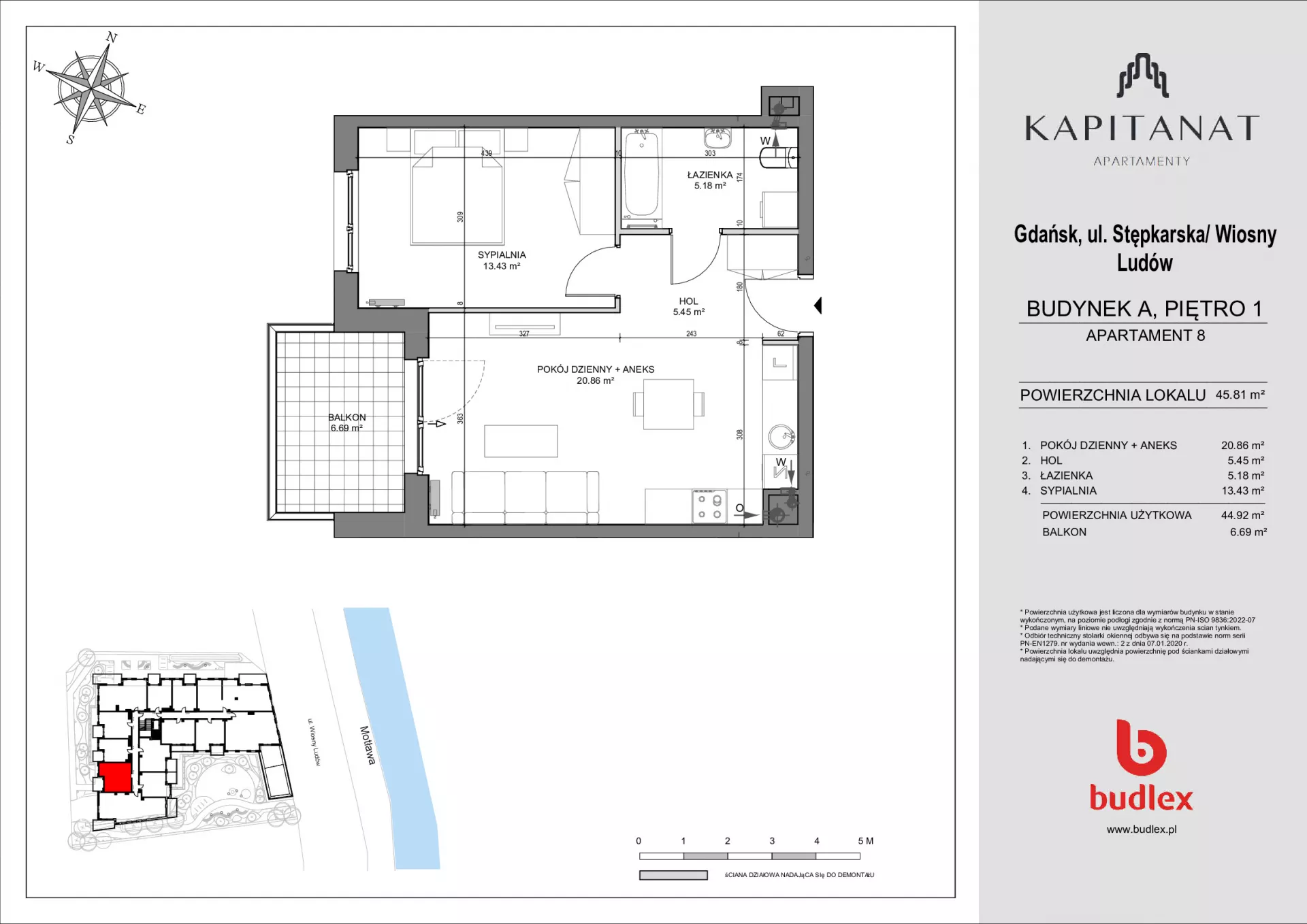 Udogodnienia: winda, wysoki standard wykończenia, komórki lokatorskie, tereny zielone wokół budynku, plac zabaw dla dzieci, blisko centrum i komunikacji miejskiej; w pobliżu znajduje się Promenada, tramwaj wodny na rzece Motława, Muzeum II Wojny Światowej, restauracje, sklepy spożywcze i punkty usługowe Przynależności: taras, balkon Bezpieczeństwo: drzwi antywłamaniowe, wideodomofon, monitoring Wielkość Projektu: 51 mieszkań Garaże: Na terenie inwestycji powstanie 51 miejsc parkingowych Komunikacja: autobus 550 m; tramwaj 1,6 km; Dworzec Główny PKP 2,2 km Odległość od Centrum: 2,2 km