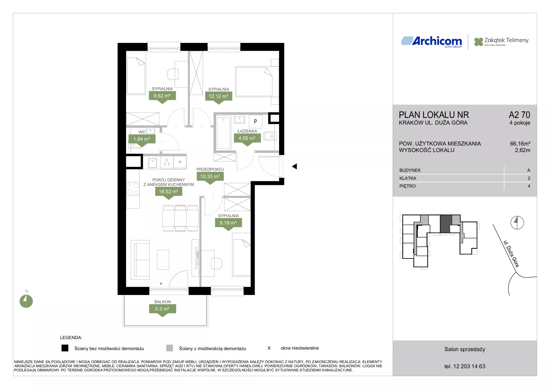 Udogodnienia: nowoczesna architektura, wysoki standard wykończenia, kameralna zabudowa, dużo zieleni wokół projektu, blisko komunikacji miejskiej i centrum miasta, pełny dostęp do miejskiej infrastruktury Przynależności: balkon Bezpieczeństwo: drzwi antywłamaniowe, wideodomofon, monitoring Wielkość Projektu: 70 mieszkań Garaże: Na terenie inwestycji powstanie hala garażowa z podziemnym parkingiem Komunikacja: W pobliżu inwestycji znajduje się sieć przystanków autobusowych, tramwajowych i stacja kolejowa Kraków Bieżanów Odległość od Centrum: 10,3 km