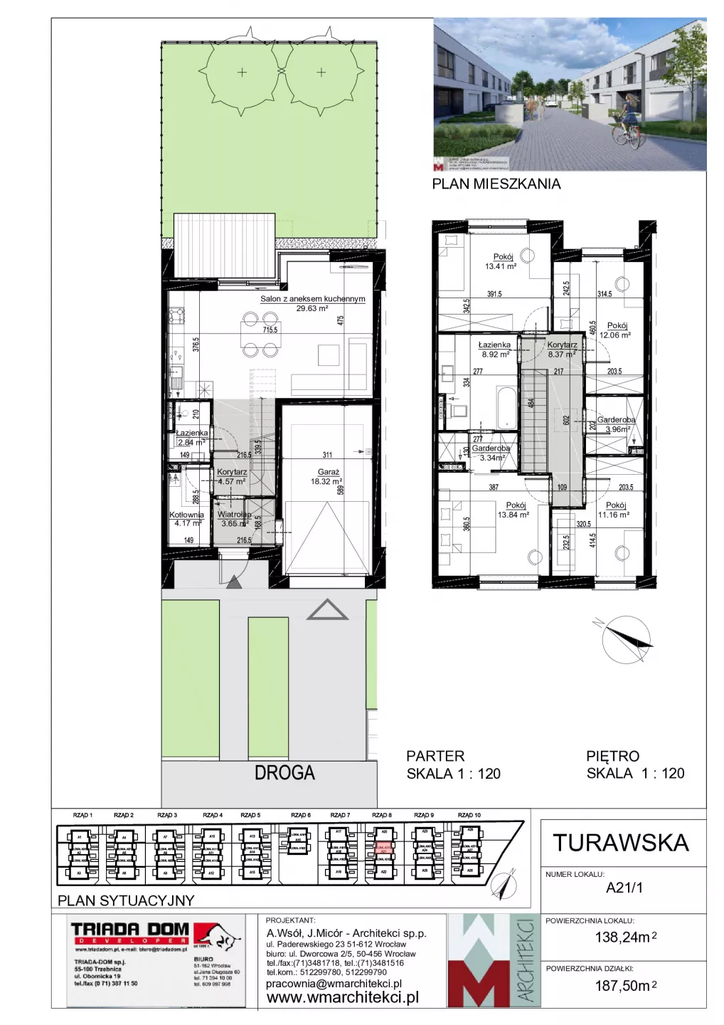 Garaże: Deweloper przewidział miejsce garażowe w każdym domu oraz dodatkowe miejsca parkingowe przy niektórych domach