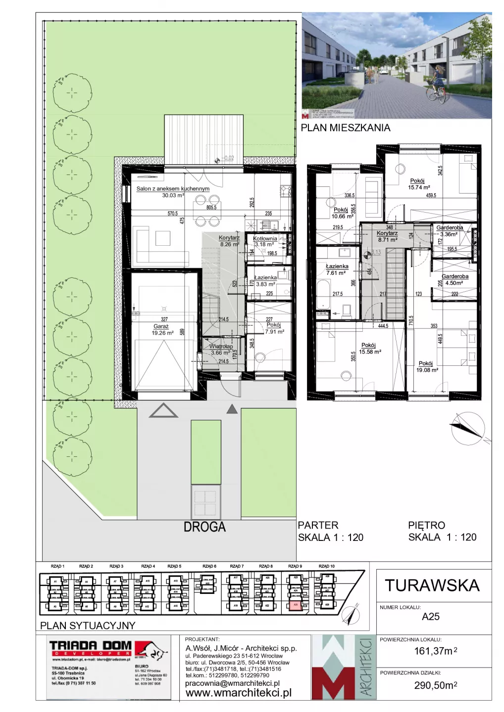 Udogodnienia: tereny zielone wokół inwestycji, panele fotowoltaiczne, klimatyzacja, elektryczne rolety, nowoczesna architektura, blisko do komunikacji miejskiej, spokojna okolica Przynależności: taras, ogródek, miejsce postojowe, komórka lokatorska Bezpieczeństwo: wideodomofon Wielkość Projektu: 38 domów Garaże: Deweloper przewidział miejsce garażowe w każdym domu oraz dodatkowe miejsca parkingowe przy niektórych domach Komunikacja: Autobus 200 m Odległość od Centrum: 7 km