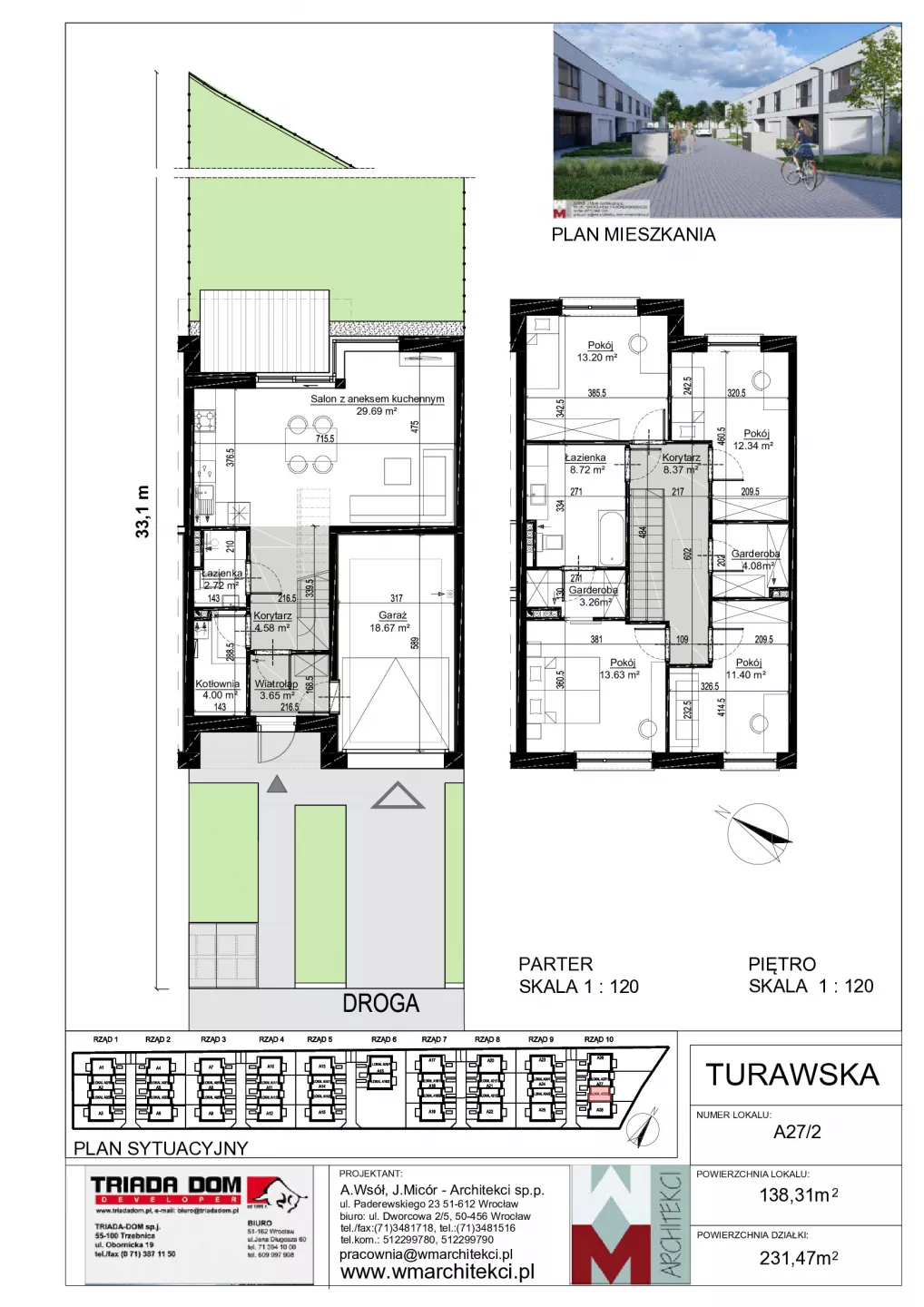 Udogodnienia: tereny zielone wokół inwestycji, panele fotowoltaiczne, klimatyzacja, elektryczne rolety, nowoczesna architektura, blisko do komunikacji miejskiej, spokojna okolica Przynależności: taras, ogródek, miejsce postojowe, komórka lokatorska Bezpieczeństwo: wideodomofon Wielkość Projektu: 38 domów Garaże: Deweloper przewidział miejsce garażowe w każdym domu oraz dodatkowe miejsca parkingowe przy niektórych domach Komunikacja: Autobus 200 m Odległość od Centrum: 7 km