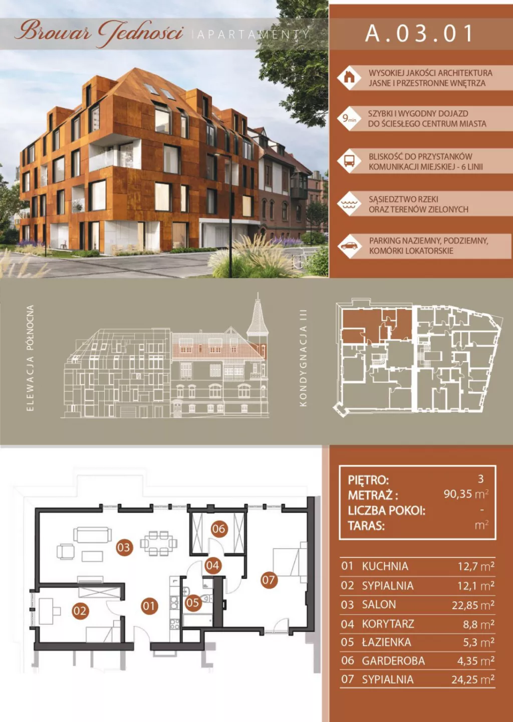 Udogodnienia: W pobliżu znajdują się tereny zielone, lokale usługowe. Przynależności: Każde mieszkanie posiada balkon lub taras. Deweloper przewidział również komórki lokatorskie. Bezpieczeństwo: Domofon. Wielkość Projektu: W inwestycji będzie dostępnych 50 apartamentów. Garaże: W inwestycji będą dostępne miejsca postojowe naziemne i podziemne. Komunikacja: 350 metrów- Tramwaj Odległość od Centrum: 1,9 km