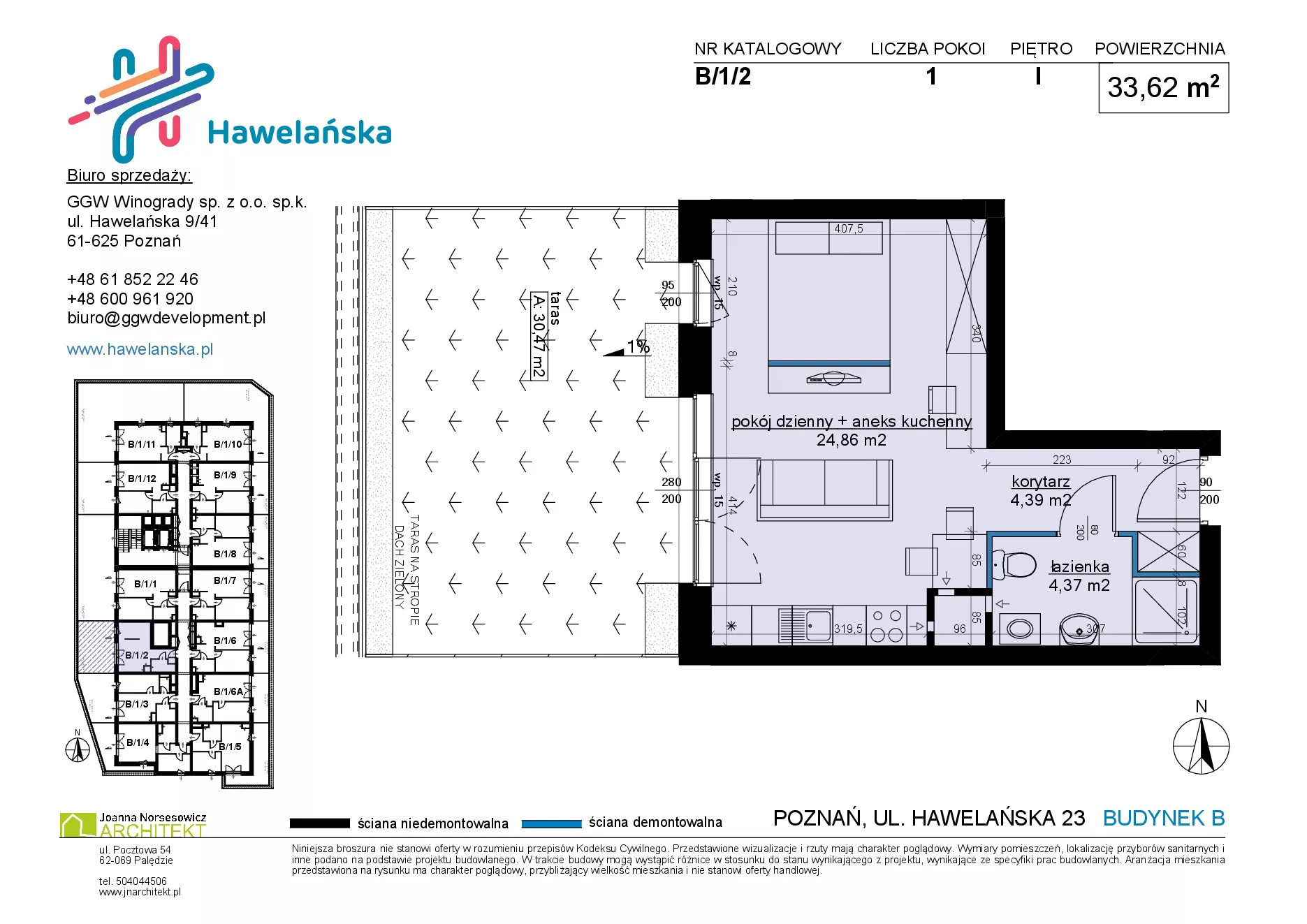Udogodnienia: tereny zielone, blisko komunikacji miejskiej, plac zabaw dla dzieci, rowerownia Przynależności: taras, loggia, balkon, miejsce postojowe, komórka lokatorska Bezpieczeństwo: drzwi antywłamaniowe, domofon, teren ogrodzony Wielkość Projektu: 126 lokali mieszkalnych Garaże: Deweloper przewidział miejsca postojowe naziemne oraz dwupoziomową halę garażową dla mieszkańców inwestycji. Komunikacja: przystanek autobusowy 300 m; przystanek tramwajowy 350 m Odległość od Centrum: Inwestycja znajduje się w centrum miasta