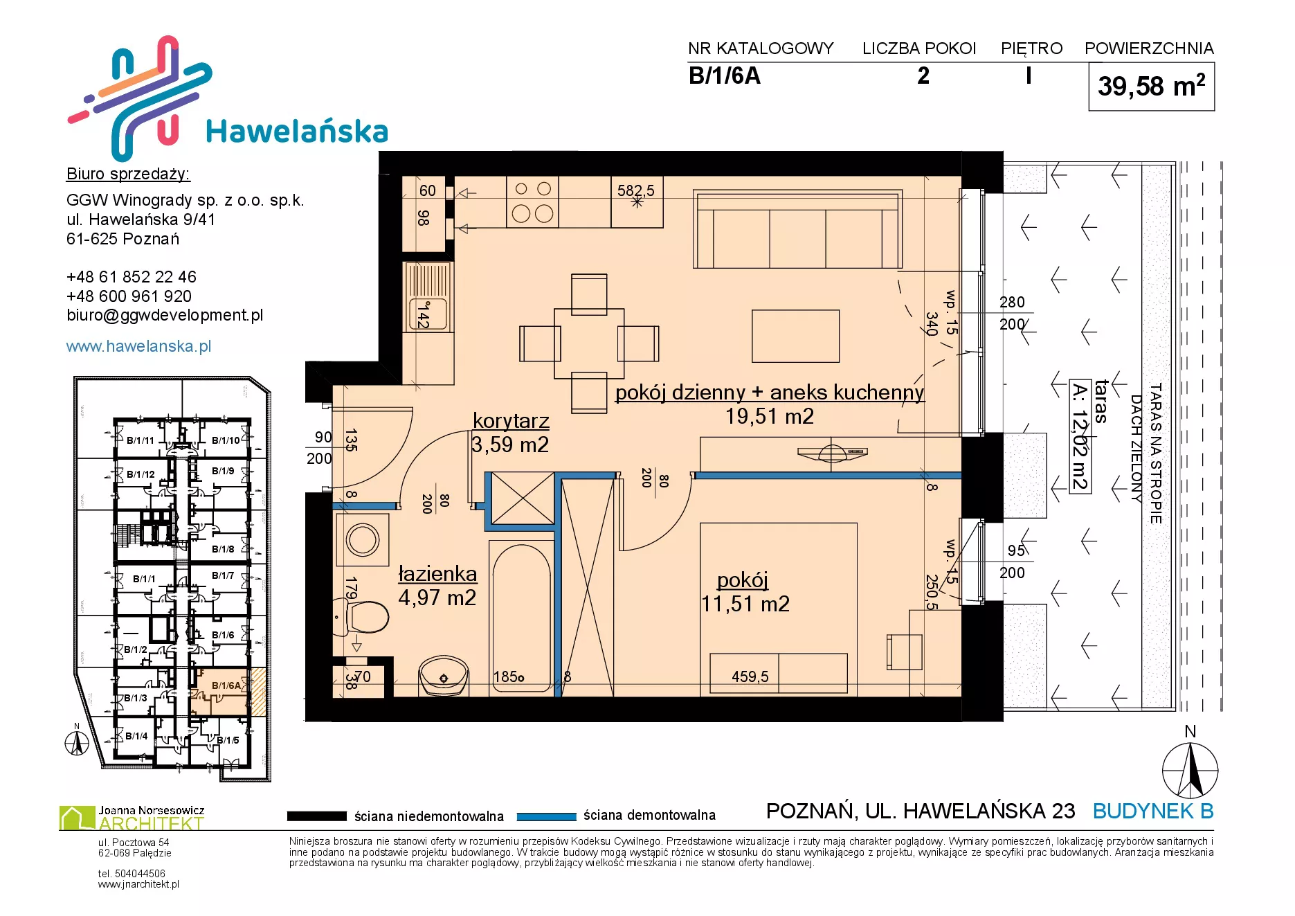 Udogodnienia: tereny zielone, blisko komunikacji miejskiej, plac zabaw dla dzieci, rowerownia Przynależności: taras, loggia, balkon, miejsce postojowe, komórka lokatorska Bezpieczeństwo: drzwi antywłamaniowe, domofon, teren ogrodzony Wielkość Projektu: 126 lokali mieszkalnych Garaże: Deweloper przewidział miejsca postojowe naziemne oraz dwupoziomową halę garażową dla mieszkańców inwestycji. Komunikacja: przystanek autobusowy 300 m; przystanek tramwajowy 350 m Odległość od Centrum: Inwestycja znajduje się w centrum miasta