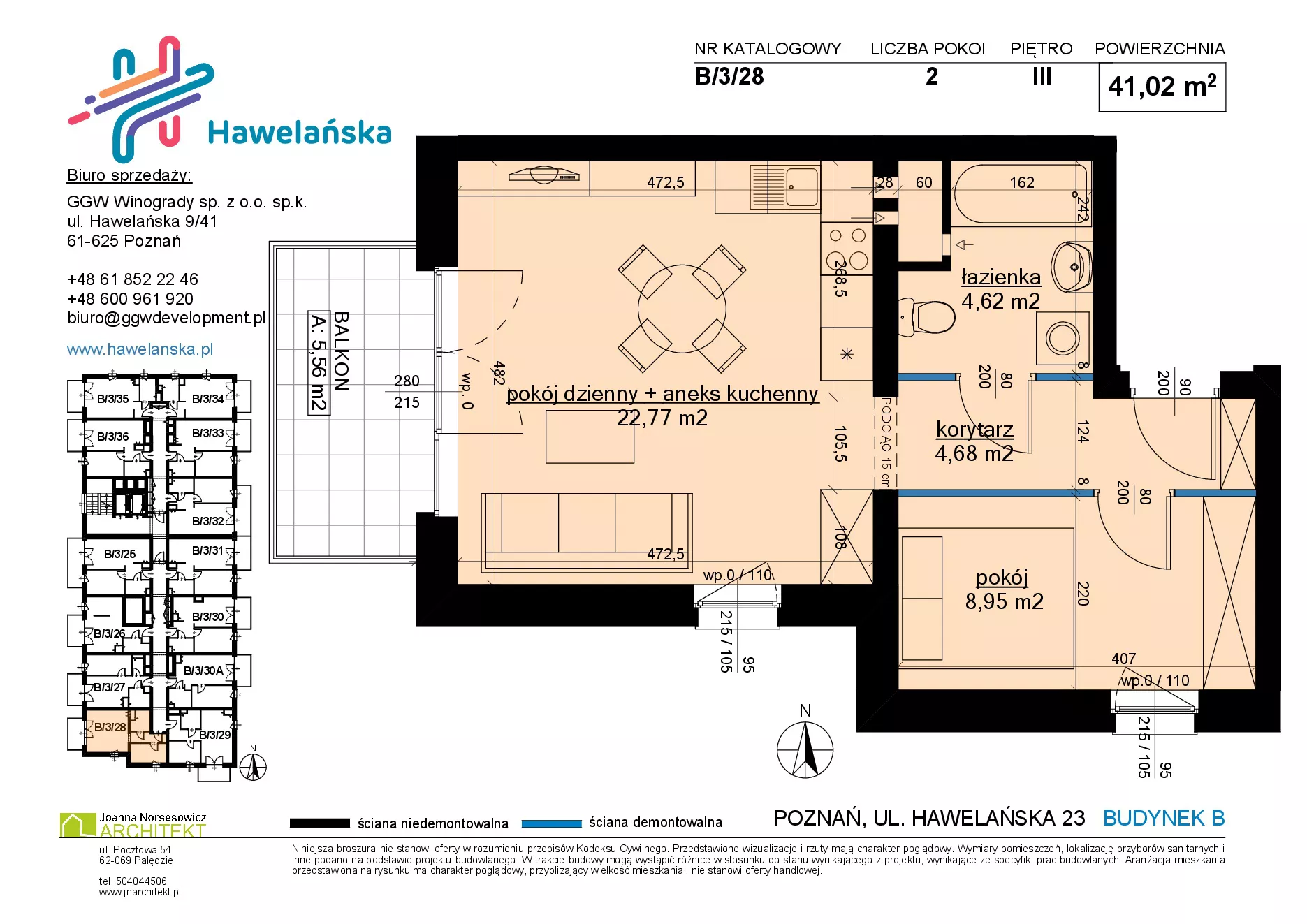 Udogodnienia: tereny zielone, blisko komunikacji miejskiej, plac zabaw dla dzieci, rowerownia Przynależności: taras, loggia, balkon, miejsce postojowe, komórka lokatorska Bezpieczeństwo: drzwi antywłamaniowe, domofon, teren ogrodzony Wielkość Projektu: 126 lokali mieszkalnych Garaże: Deweloper przewidział miejsca postojowe naziemne oraz dwupoziomową halę garażową dla mieszkańców inwestycji. Komunikacja: przystanek autobusowy 300 m; przystanek tramwajowy 350 m Odległość od Centrum: Inwestycja znajduje się w centrum miasta