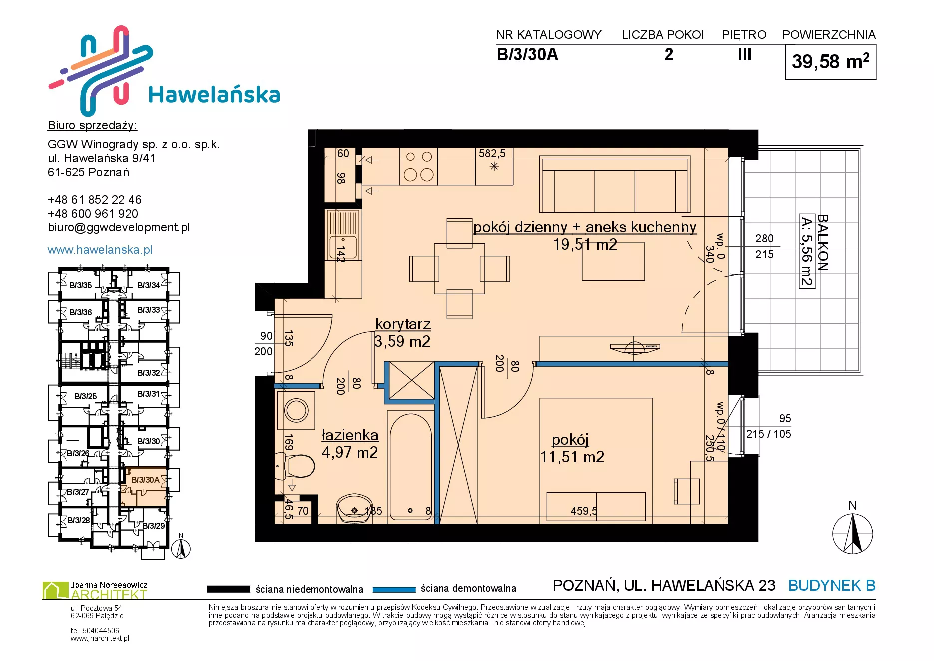Udogodnienia: tereny zielone, blisko komunikacji miejskiej, plac zabaw dla dzieci, rowerownia Przynależności: taras, loggia, balkon, miejsce postojowe, komórka lokatorska Bezpieczeństwo: drzwi antywłamaniowe, domofon, teren ogrodzony Wielkość Projektu: 126 lokali mieszkalnych Garaże: Deweloper przewidział miejsca postojowe naziemne oraz dwupoziomową halę garażową dla mieszkańców inwestycji. Komunikacja: przystanek autobusowy 300 m; przystanek tramwajowy 350 m Odległość od Centrum: Inwestycja znajduje się w centrum miasta