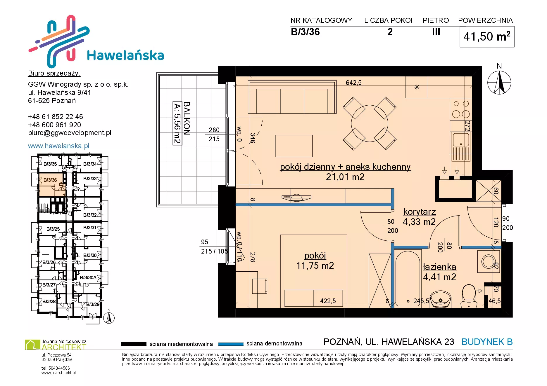 Udogodnienia: tereny zielone, blisko komunikacji miejskiej, plac zabaw dla dzieci, rowerownia Przynależności: taras, loggia, balkon, miejsce postojowe, komórka lokatorska Bezpieczeństwo: drzwi antywłamaniowe, domofon, teren ogrodzony Wielkość Projektu: 126 lokali mieszkalnych Garaże: Deweloper przewidział miejsca postojowe naziemne oraz dwupoziomową halę garażową dla mieszkańców inwestycji. Komunikacja: przystanek autobusowy 300 m; przystanek tramwajowy 350 m Odległość od Centrum: Inwestycja znajduje się w centrum miasta