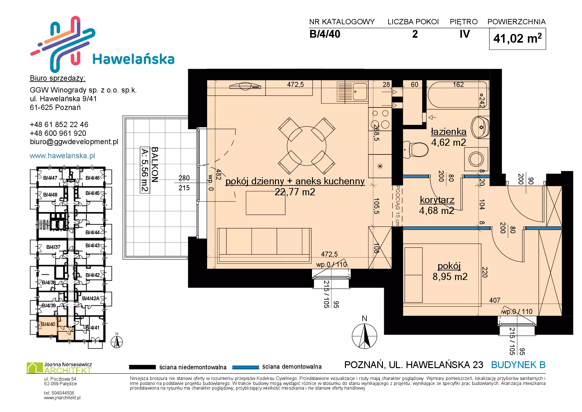 Udogodnienia: tereny zielone, blisko komunikacji miejskiej, plac zabaw dla dzieci, rowerownia Przynależności: taras, loggia, balkon, miejsce postojowe, komórka lokatorska Bezpieczeństwo: drzwi antywłamaniowe, domofon, teren ogrodzony Wielkość Projektu: 126 lokali mieszkalnych Garaże: Deweloper przewidział miejsca postojowe naziemne oraz dwupoziomową halę garażową dla mieszkańców inwestycji. Komunikacja: przystanek autobusowy 300 m; przystanek tramwajowy 350 m Odległość od Centrum: Inwestycja znajduje się w centrum miasta