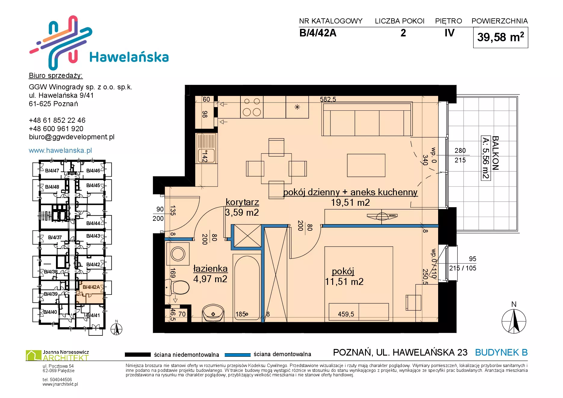 Udogodnienia: tereny zielone, blisko komunikacji miejskiej, plac zabaw dla dzieci, rowerownia Przynależności: taras, loggia, balkon, miejsce postojowe, komórka lokatorska Bezpieczeństwo: drzwi antywłamaniowe, domofon, teren ogrodzony Wielkość Projektu: 126 lokali mieszkalnych Garaże: Deweloper przewidział miejsca postojowe naziemne oraz dwupoziomową halę garażową dla mieszkańców inwestycji. Komunikacja: przystanek autobusowy 300 m; przystanek tramwajowy 350 m Odległość od Centrum: Inwestycja znajduje się w centrum miasta