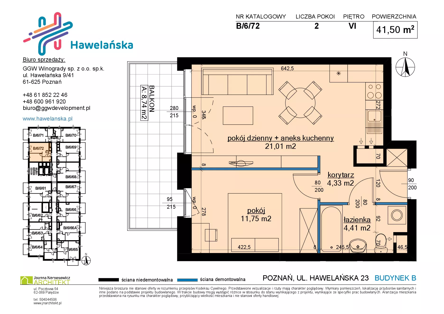Udogodnienia: tereny zielone, blisko komunikacji miejskiej, plac zabaw dla dzieci, rowerownia Przynależności: taras, loggia, balkon, miejsce postojowe, komórka lokatorska Bezpieczeństwo: drzwi antywłamaniowe, domofon, teren ogrodzony Wielkość Projektu: 126 lokali mieszkalnych Garaże: Deweloper przewidział miejsca postojowe naziemne oraz dwupoziomową halę garażową dla mieszkańców inwestycji. Komunikacja: przystanek autobusowy 300 m; przystanek tramwajowy 350 m Odległość od Centrum: Inwestycja znajduje się w centrum miasta