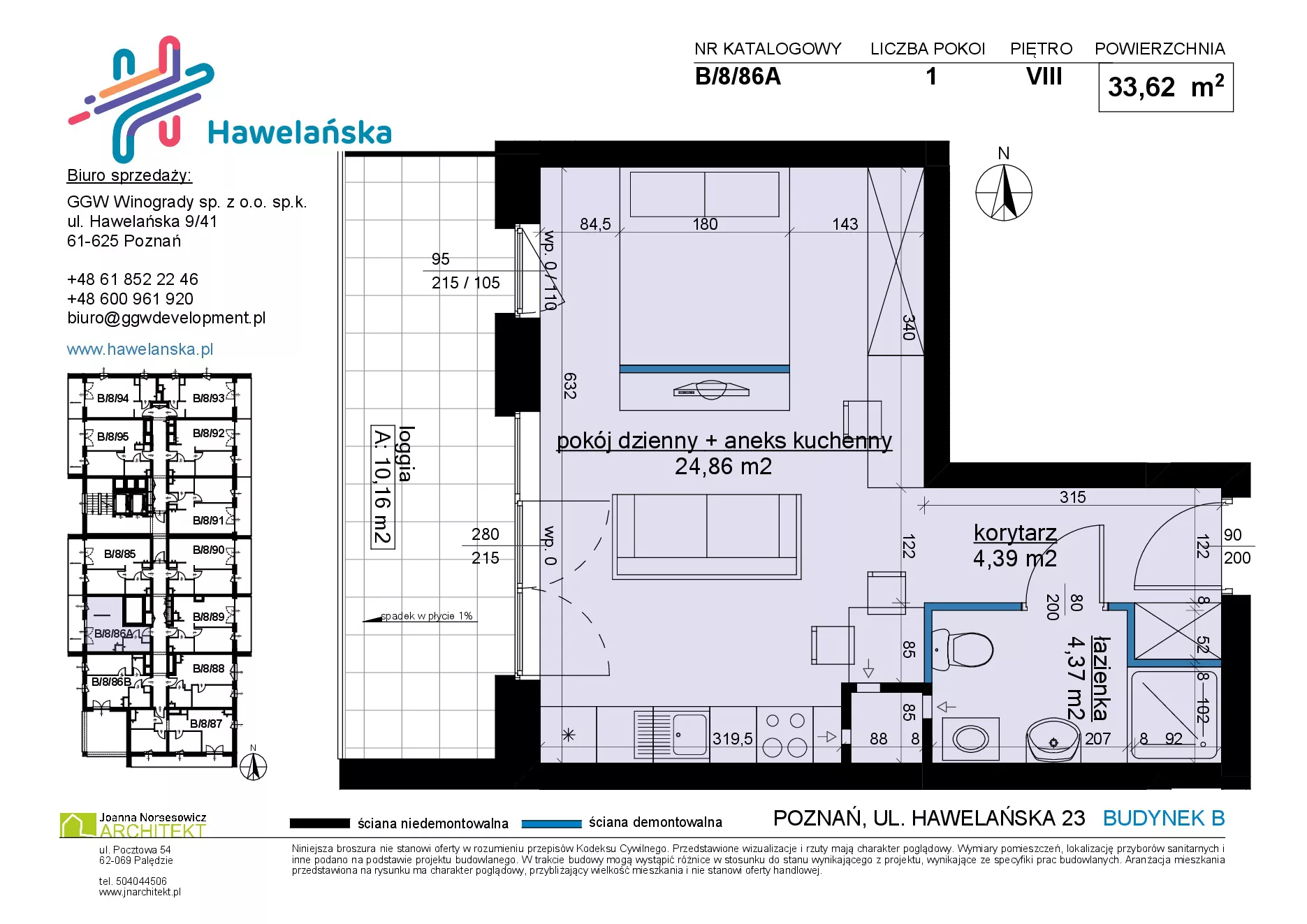 Udogodnienia: tereny zielone, blisko komunikacji miejskiej, plac zabaw dla dzieci, rowerownia Przynależności: taras, loggia, balkon, miejsce postojowe, komórka lokatorska Bezpieczeństwo: drzwi antywłamaniowe, domofon, teren ogrodzony Wielkość Projektu: 126 lokali mieszkalnych Garaże: Deweloper przewidział miejsca postojowe naziemne oraz dwupoziomową halę garażową dla mieszkańców inwestycji. Komunikacja: przystanek autobusowy 300 m; przystanek tramwajowy 350 m Odległość od Centrum: Inwestycja znajduje się w centrum miasta