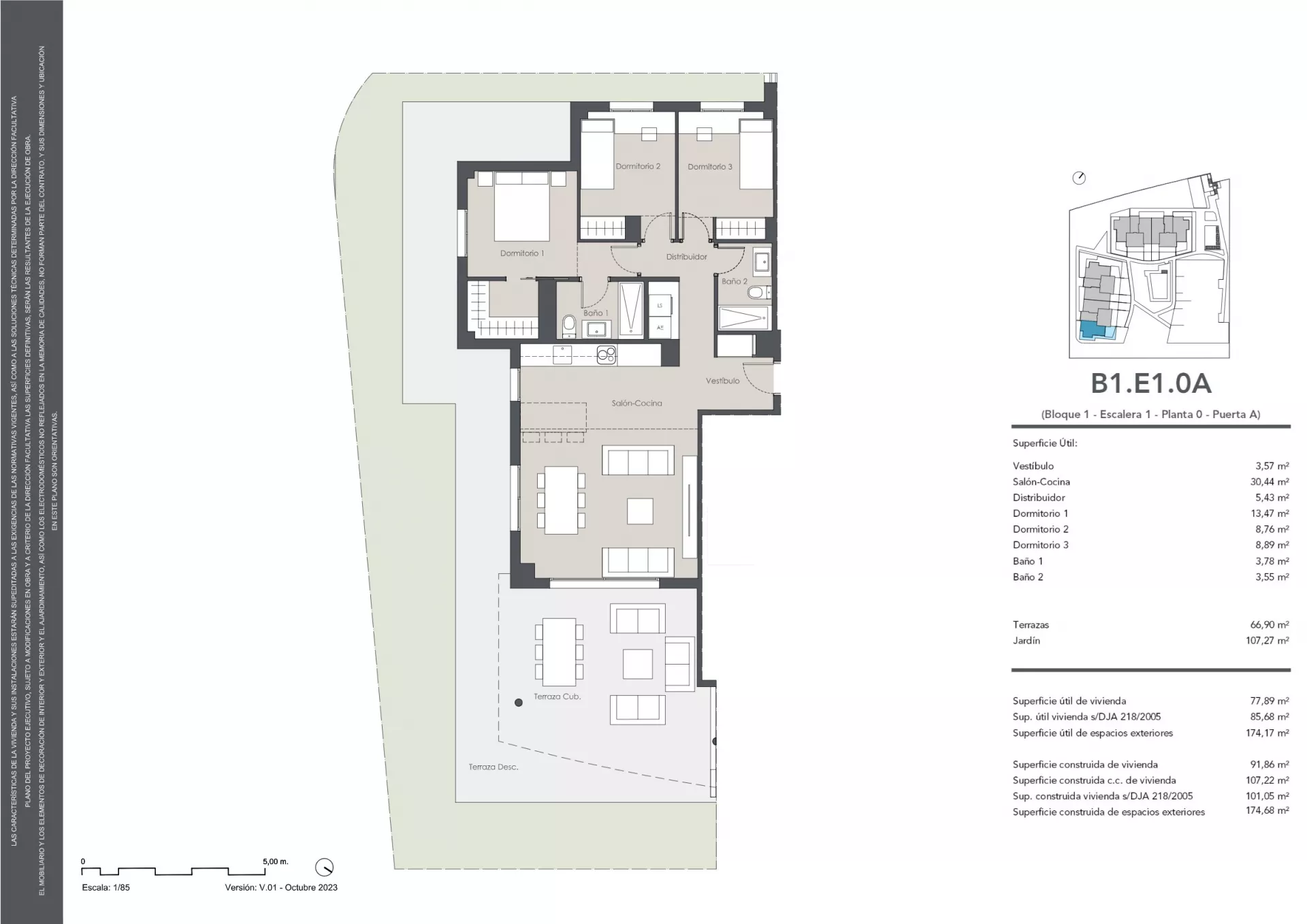 Opis: Nowoczesny kompleks mieszkaniowy składający się z 48 apartamentów i penthouse'ów z 2 i 3 sypialniami, zlokalizowany w dzielnicy Guadalobón w Esteponie. Inwestycja obejmuje 3 trzypiętrowe budynki, oferujące mieszkania na parterze z ogrodem, na pierwszym piętrze oraz penthouse'y z przestronnymi tarasami i solarium. Projekt charakteryzuje się nowoczesną architekturą, przestronnymi wnętrzami oraz dużymi oknami zapewniającymi obfite naturalne światło i widoki na morze. Natura Estepona została zaprojektowana z myślą o maksymalnym komforcie mieszkańców, z wykorzystaniem wysokiej jakości materiałów i starannym wykończeniem. Udogodnienia: Mieszkańcy mają do dyspozycji nowoczesny basen o awangardowym designie, idealny do relaksu i rekreacji. Na terenie kompleksu znajduje się strefa chill-out, doskonała do odpoczynku i spotkań towarzyskich. W pełni wyposażona siłownia umożliwia mieszkańcom dbanie o kondycję fizyczną bez opuszczania osiedla. Dla osób pracujących zdalnie przewidziano przestrzeń coworkingową, sprzyjającą efektywnej pracy w komfortowych warunkach. Otaczające budynki rozległe tereny zielone zapewniają mieszkańcom kontakt z naturą i przestrzeń do relaksu. Przynależności: Każde mieszkanie posiada prywatne miejsce parkingowe w garażu podziemnym oraz komórkę lokatorską, wliczone w cenę zakupu. Plaża Arroyo Vaquero znajduje się w odległości krótkiego spaceru, oferując mieszkańcom łatwy dostęp do morza. W pobliżu inwestycji znajdują się liczne supermarkety, szkoły, restauracje oraz centra medyczne, zapewniając codzienną wygodę. Miłośnicy golfa docenią bliskość renomowanych pól golfowych, takich jak Estepona Golf, Finca Cortesín czy Azata Golf. Lokalizacja łączy w sobie spokój nadmorskiego życia z łatwym dostępem do atrakcji miejskich Estepony. Bezpieczeństwo: Kompleks jest ogrodzony, co zapewnia mieszkańcom poczucie prywatności i bezpieczeństwa. System wideodomofonów umożliwia kontrolę dostępu do budynków i zwiększa bezpieczeństwo. Wzmocnione drzwi wejściowe do mieszkań stanowią dodatkową ochronę przed niepożądanym dostępem. Oświetlenie terenów wspólnych zostało zaprojektowane z myślą o zapewnieniu widoczności i bezpieczeństwa po zmroku. Zamknięta urbanizacja sprzyja spokojnemu i bezpiecznemu stylowi życia mieszkańców. Wielkość Projektu: 48 apartamentów Garaż: Miejsca parkingowe w garazu podziemnym plus komorka lokatorska Komunikacja: Natura Estepona znajduje się zaledwie 5 minut jazdy samochodem od centrum Estepony, co zapewnia szybki dostęp do miejskich udogodnień. Puerto Banús oddalone jest o 10 minut jazdy, a Marbella o 20 minut, co umożliwia łatwe korzystanie z atrakcji tych miast. Plaża Arroyo Vaquero znajduje się w odległości krótkiego spaceru, oferując mieszkańcom łatwy dostęp do morza. Lotnisko w Maladze oddalone jest o około 50 minut jazdy samochodem, co ułatwia podróże międzynarodowe. Bliskość głównych arterii komunikacyjnych zapewnia szybki dojazd do innych miejscowości na Costa del Sol. Odległość od morza: 500m
