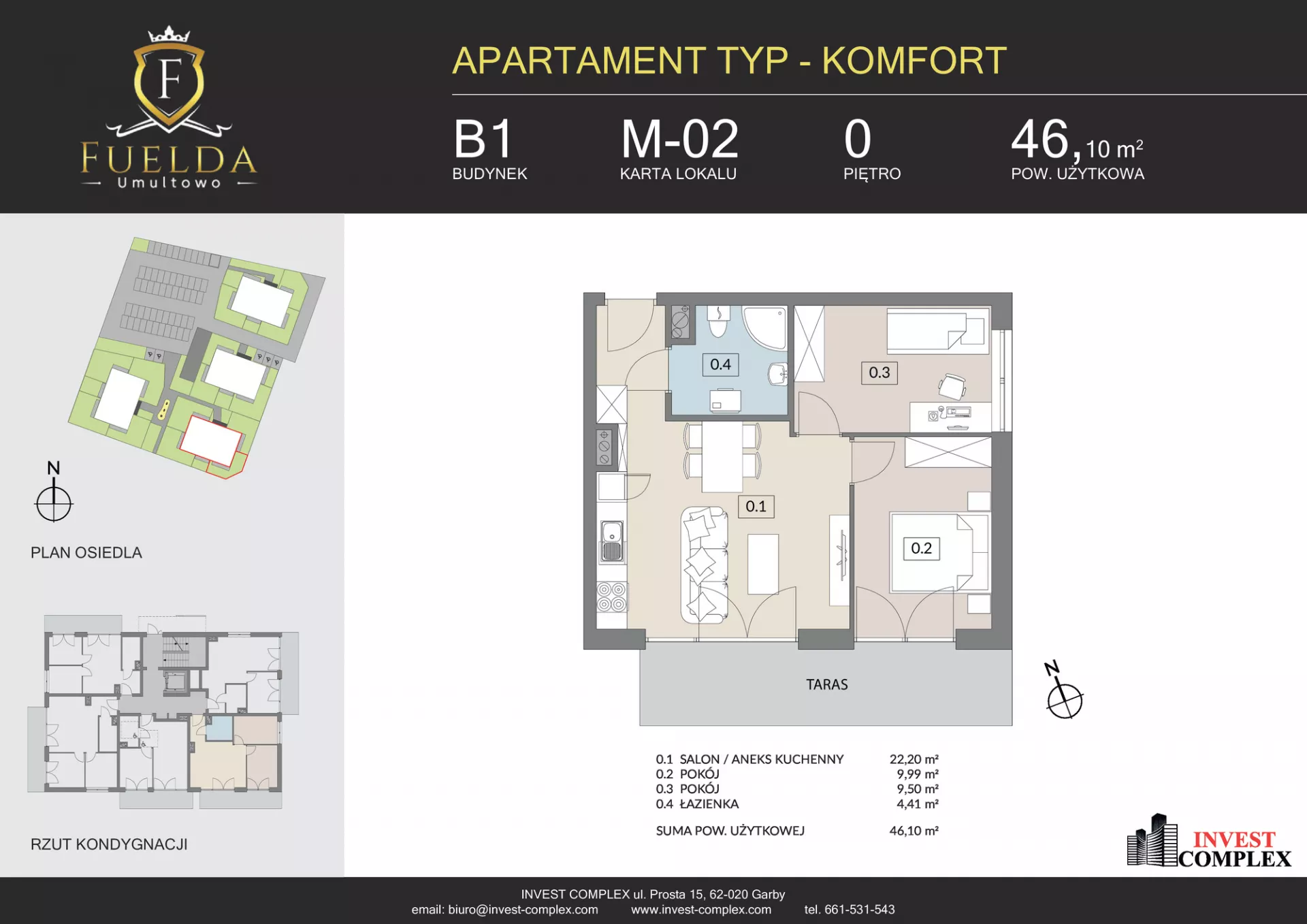 Udogodnienia: kameralna inwestycja, nowoczesna architektura; wysoki standard inwestycji; miejsca na rowery, w pełni rozwinięta infrastruktura handlowo-usługowa w bezpośrednim sąsiedztwie; plac zabaw dla dzieci, cichobieżne windy, blisko tereny zielone - park Żurawiniec oraz tereny nadwarciańskie, w okolicy znajduje się Kampus Morasko Uniwersytetu Adama Mickiewicza Przynależności: ogródek, taras, balkon Bezpieczeństwo: domofon, drzwi antywłamaniowe, teren zamknięty Wielkość Projektu: 72 mieszkań Garaże: Deweloper zaprojektował naziemne oraz podziemne miejsca postojowe dla mieszkańców inwestycji Komunikacja: Autobus 650 m Odległość od Centrum: 8 km