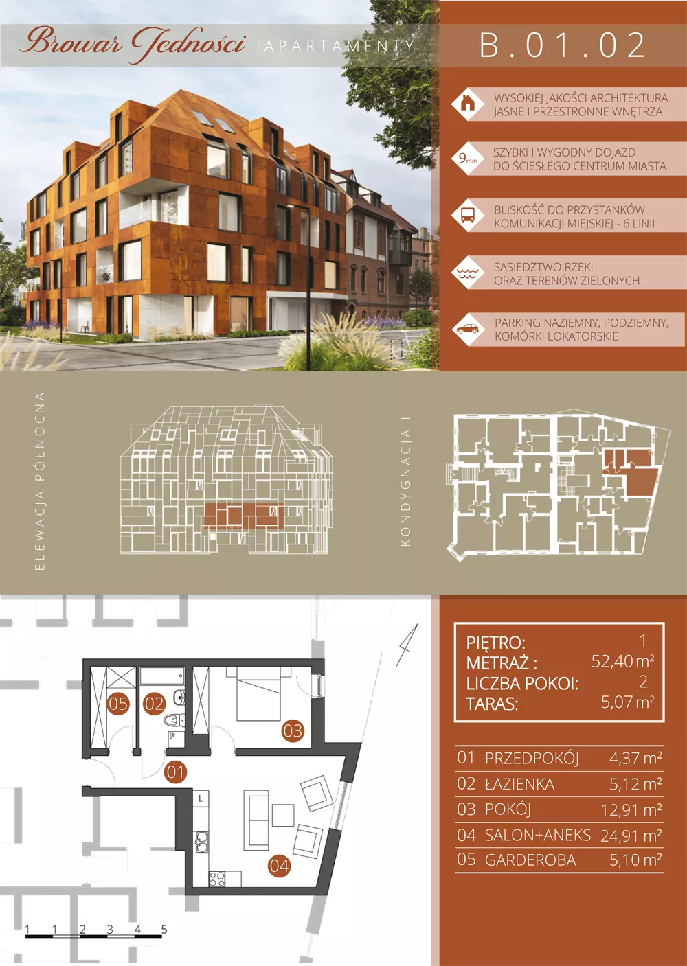 Udogodnienia: W pobliżu znajdują się tereny zielone, lokale usługowe. Przynależności: Każde mieszkanie posiada balkon lub taras. Deweloper przewidział również komórki lokatorskie. Bezpieczeństwo: Domofon. Wielkość Projektu: W inwestycji będzie dostępnych 50 apartamentów. Garaże: W inwestycji będą dostępne miejsca postojowe naziemne i podziemne. Komunikacja: 350 metrów- Tramwaj Odległość od Centrum: 1,9 km