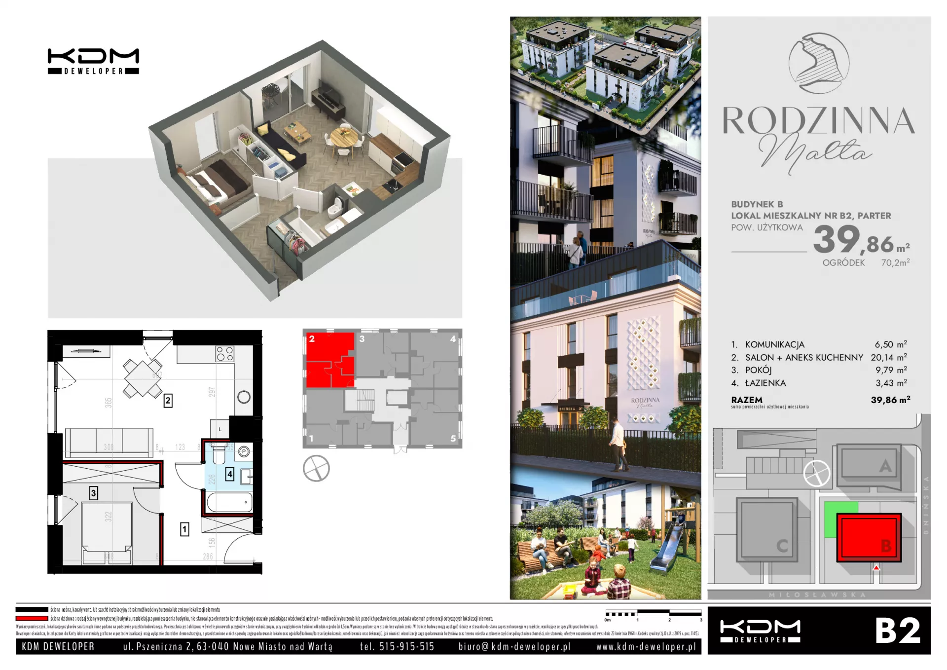 Udogodnienia: nowoczesna inwestycja, winda, podwyższony standard wykończenia, tereny zielone - Park Tysiąclecia i Jezioro Maltańskie, blisko centrum miasta i komunikacji miejskiej, w pobliżu znajdują się Termy Maltańskie, sklepy, restauracje, przedszkole, plac zabaw, restauracje i punkty usługowe Przynależności: balkon, ogródek Wielkość Projektu: 56 mieszkań Garaże: Na terenie inwestycji znajdują się dwie podziemne hale garażowe - łącznie 79 miejsc parkingowych Komunikacja: przystanek autobusowy 650 m, przystanek tramwajowy 1,7 km Odległość od Centrum: 5,5 km