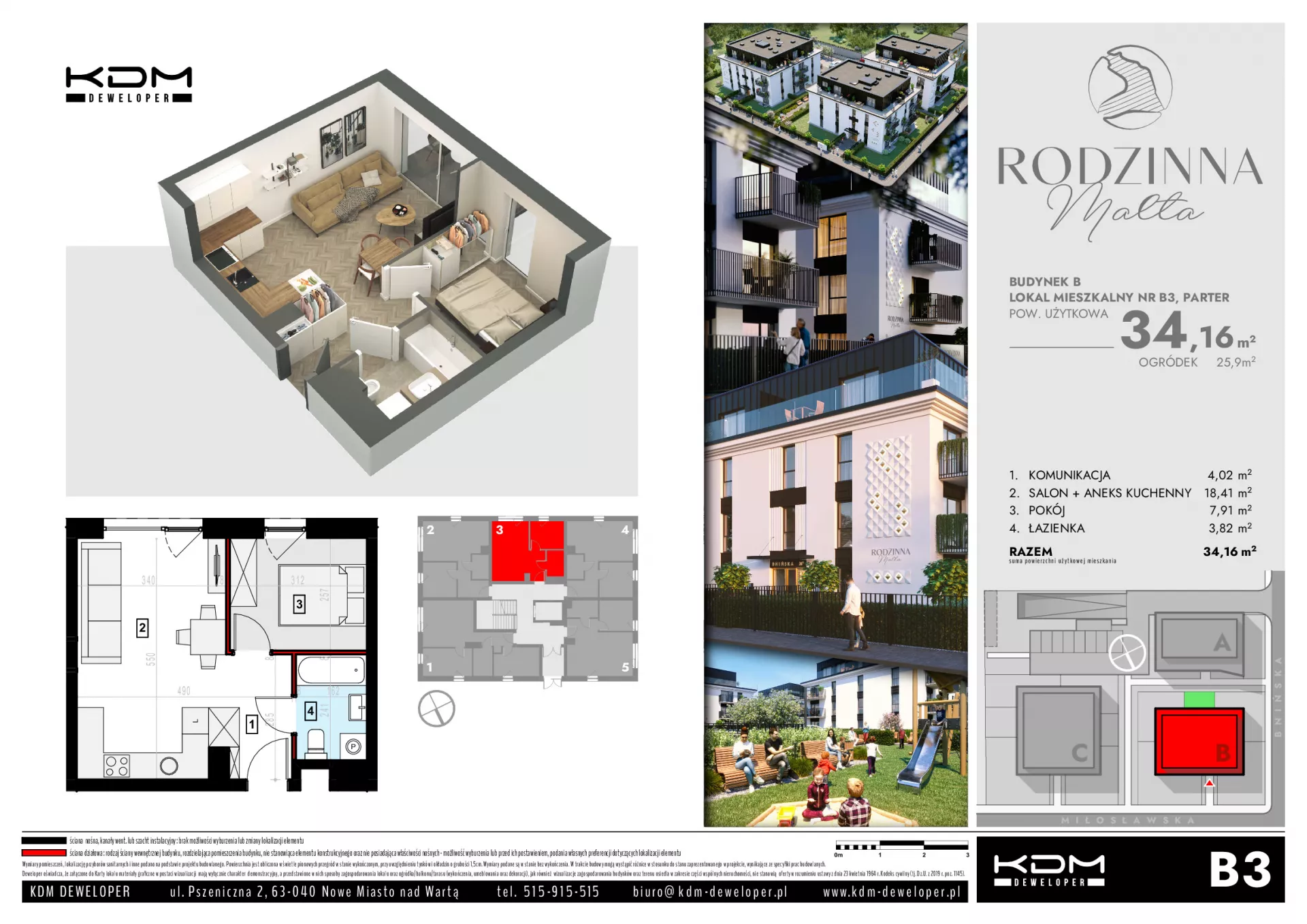 Udogodnienia: nowoczesna inwestycja, winda, podwyższony standard wykończenia, tereny zielone - Park Tysiąclecia i Jezioro Maltańskie, blisko centrum miasta i komunikacji miejskiej, w pobliżu znajdują się Termy Maltańskie, sklepy, restauracje, przedszkole, plac zabaw, restauracje i punkty usługowe Przynależności: balkon, ogródek Wielkość Projektu: 56 mieszkań Garaże: Na terenie inwestycji znajdują się dwie podziemne hale garażowe - łącznie 79 miejsc parkingowych Komunikacja: przystanek autobusowy 650 m, przystanek tramwajowy 1,7 km Odległość od Centrum: 5,5 km