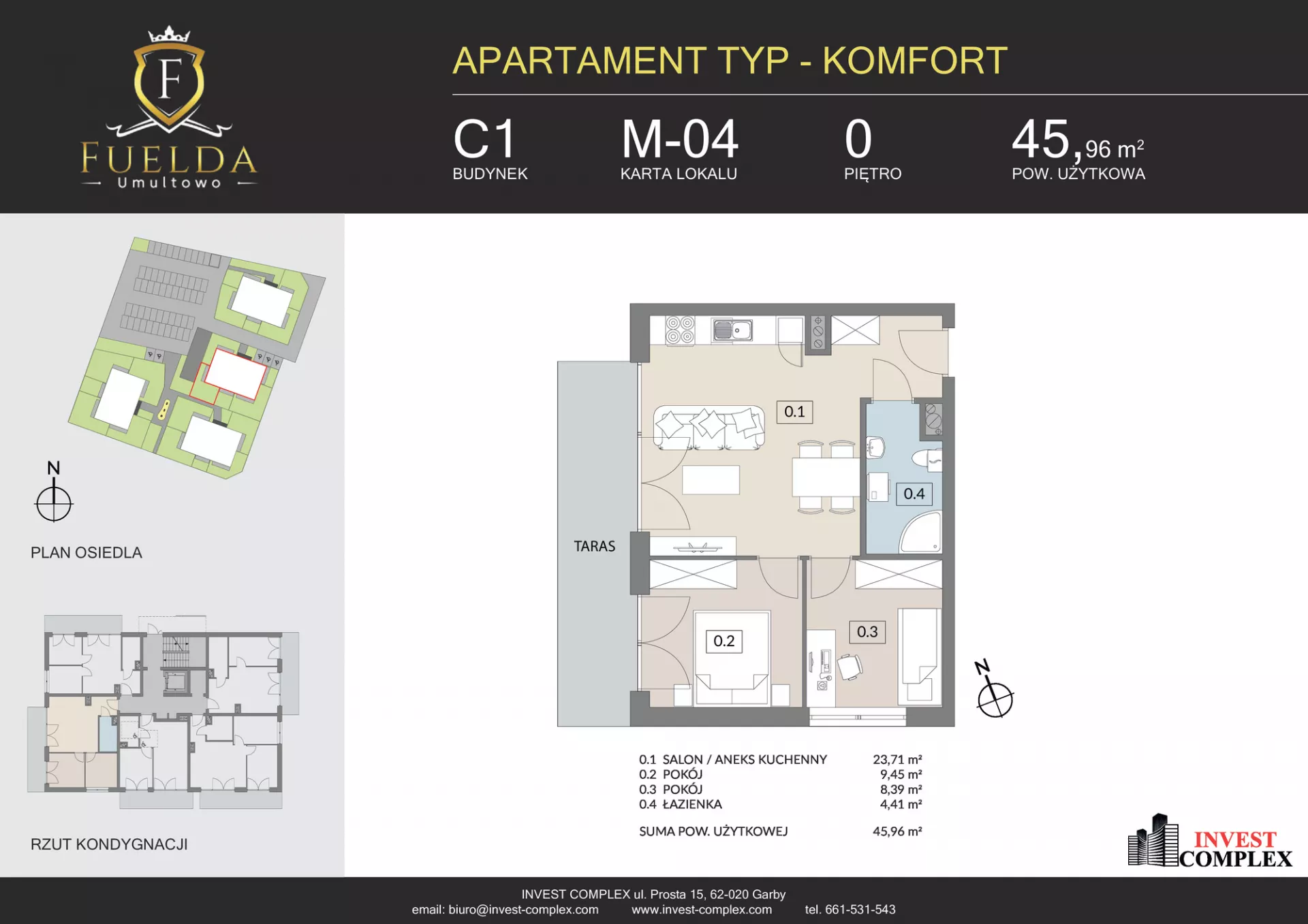 Udogodnienia: kameralna inwestycja, nowoczesna architektura; wysoki standard inwestycji; miejsca na rowery, w pełni rozwinięta infrastruktura handlowo-usługowa w bezpośrednim sąsiedztwie; plac zabaw dla dzieci, cichobieżne windy, blisko tereny zielone - park Żurawiniec oraz tereny nadwarciańskie, w okolicy znajduje się Kampus Morasko Uniwersytetu Adama Mickiewicza Przynależności: ogródek, taras, balkon Bezpieczeństwo: domofon, drzwi antywłamaniowe, teren zamknięty Wielkość Projektu: 72 mieszkań Garaże: Deweloper zaprojektował naziemne oraz podziemne miejsca postojowe dla mieszkańców inwestycji Komunikacja: Autobus 650 m Odległość od Centrum: 8 km