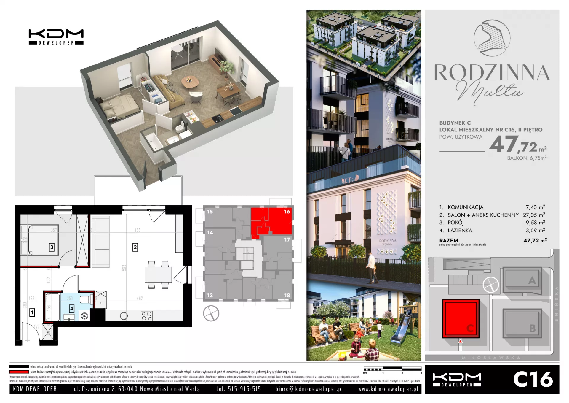 Udogodnienia: nowoczesna inwestycja, winda, podwyższony standard wykończenia, tereny zielone - Park Tysiąclecia i Jezioro Maltańskie, blisko centrum miasta i komunikacji miejskiej, w pobliżu znajdują się Termy Maltańskie, sklepy, restauracje, przedszkole, plac zabaw, restauracje i punkty usługowe Przynależności: balkon, ogródek Wielkość Projektu: 56 mieszkań Garaże: Na terenie inwestycji znajdują się dwie podziemne hale garażowe - łącznie 79 miejsc parkingowych Komunikacja: przystanek autobusowy 650 m, przystanek tramwajowy 1,7 km Odległość od Centrum: 5,5 km