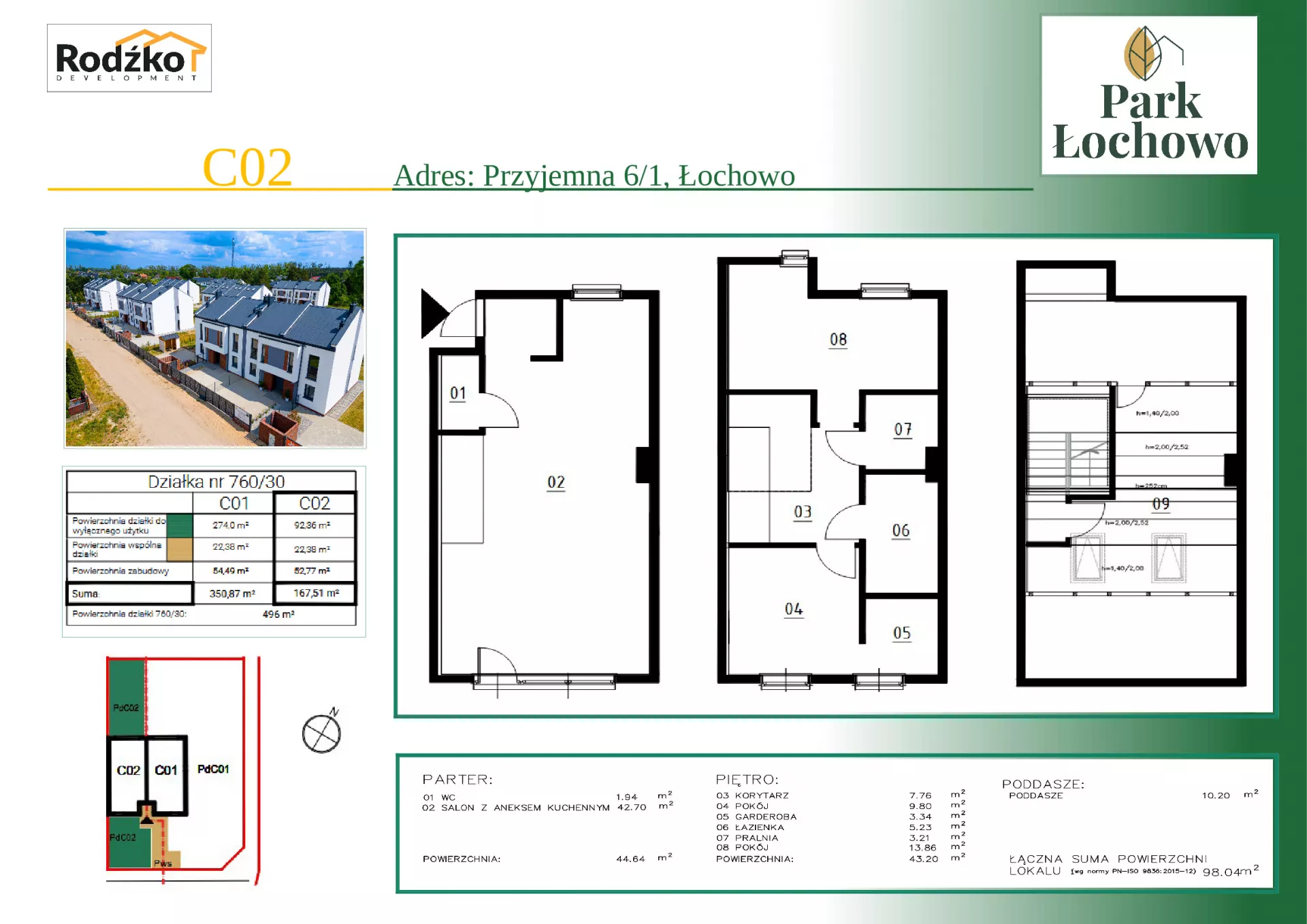 Udogodnienia: Osiedle Park Łochowo zlokalizowane jest tuż obok Górnego Kanału Noteckiego, dlatego cieszy się piękną i zieloną okolicą, zapewniającą wiele ścieżek do spacerów, a sam Kanał Notecki daje, również możliwość organizowania spływów kajakowych, jak i może być zachętą dla wędkarzy. Przynależności: ogród, 2 miejsca parkingowe naziemne Bezpieczeństwo: drzwi antywłamaniowe, teren zamknięty Wielkość Projektu: 36 domów w zabudowie bliźniaczej Garaże: W cenie każdego domu przewidywane są 2 wybrukowane miejsca postojowe przed posesją, jest również możliwość dobudowania garażu/wiaty. Komunikacja: blisko obwodnicy Bydgoszczy i jednocześnie trasy S5, przystanek autobusowy 1 km, linie autobusowe 90 i 92 (cena biletu miejskiego) Odległość od Centrum: 12 km do Bydgoszczy Szczegóły: Cesja indyw