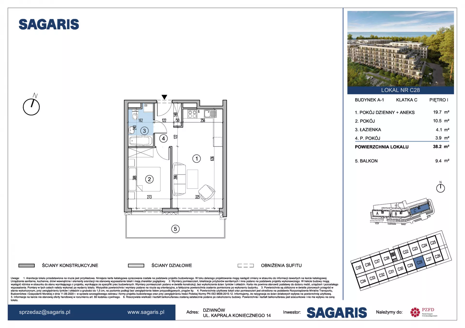 Udogodnienia: nowoczesna architektura, cicha i spokojna okolica, , blisko do plaży-60m, winda, plac zabaw, rowerownia i stacja naprawcza, kort do squasha, sala fitness/siłownia, grota solna, Saunarium z 4 saunami, wspólne patio, 3 baseny Otoczenie: las, trasy biegowe, ścieżki rowerowe - szlak Velo Baltica, który wiedzie od Świnoujścia do Ustki, Park Miejski z kortami tenisowymi i boiskiem do koszykówki, restauracje i kawiarnie, 6 obiektów sportowych, 4 place zabaw, organizowany jest Festival Gwiazd Sportu, dla dzieci Parku Miniatur i Kolejek, potencjał dla sportów wodnych Przynależności: balkon, taras, miejsce postojowe Bezpieczeństwo: drzwi antywłamaniowe, wideodomofon, okna 3-szybowe Wielkość Projektu: 1 budynek 5-cio kondygnacyjny , 3 segmenty, 211 apartamentów 2,3,4-pokojowych Garaże: 146 miejsc w hali garażowej oraz 59 naziemne Komunikacja: Przystanek autobusowy 500m, droga S3 i 102 Odległość od Centrum: 900m Szczegóły: wysokość pomieszczeń 260-280cm, standard deweloperski, deweloper należy do PZFD