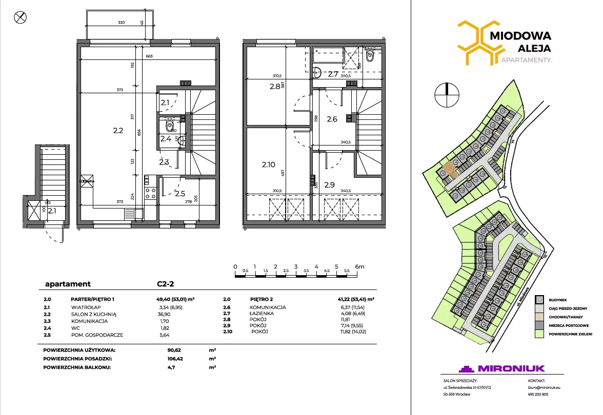 Udogodnienia: Apartamenty Miodowa Aleja to osiedle położone z dala od miasta wśród terenów zielonych z bardzo dobrze rozbudowaną siecią usługową. W okolicy znajdują się sklepy spożywcze, fryzjer, szkoła, paczkomat, restauracja czy siłownia na świeżym powietrzu. Mieszkańcy będą mieli też do dyspozycji dobrze rozbudowaną sieć komunikacyjną, za pomocą której dotrą łatwo i szybko do centrum Wrocławia. Przynależności: Do każdego mieszkania przynależy ogródek, taras lub balkon. Bezpieczeństwo: drzwi antywłamaniowe, teren zamknięty, videodomofon Wielkość Projektu: Inwestycja składa się z 42 apartamentów w zabudowie szeregowej. Garaże: Do dyspozycji mieszkańców są miejsca postojowe. Komunikacja: przystanek autobusowy 120 m, stacja kolejowa 400 m Odległość od Centrum: 9,4 km