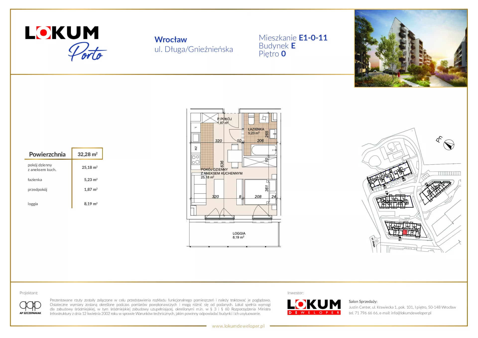 Udogodnienia: Plac zabaw, siłownia terenowa, ławki wraz ze organizowanymi miejscami wypoczynku dla mieszkańców. Przynależności: Wszystkie mieszkania posiadają balkon lub taras. Deweloper przewidział również komórki lokatorskie. Bezpieczeństwo: Drzwi antywłamaniowe, domofon. Wielkość Projektu: 66 mieszkań Garaże: W inwestycji będą dostępne miejsca postojowe. Komunikacja: Autobus 650 metrów, Tramwaj 1,3 km. Odległość od Centrum: 5,2 km