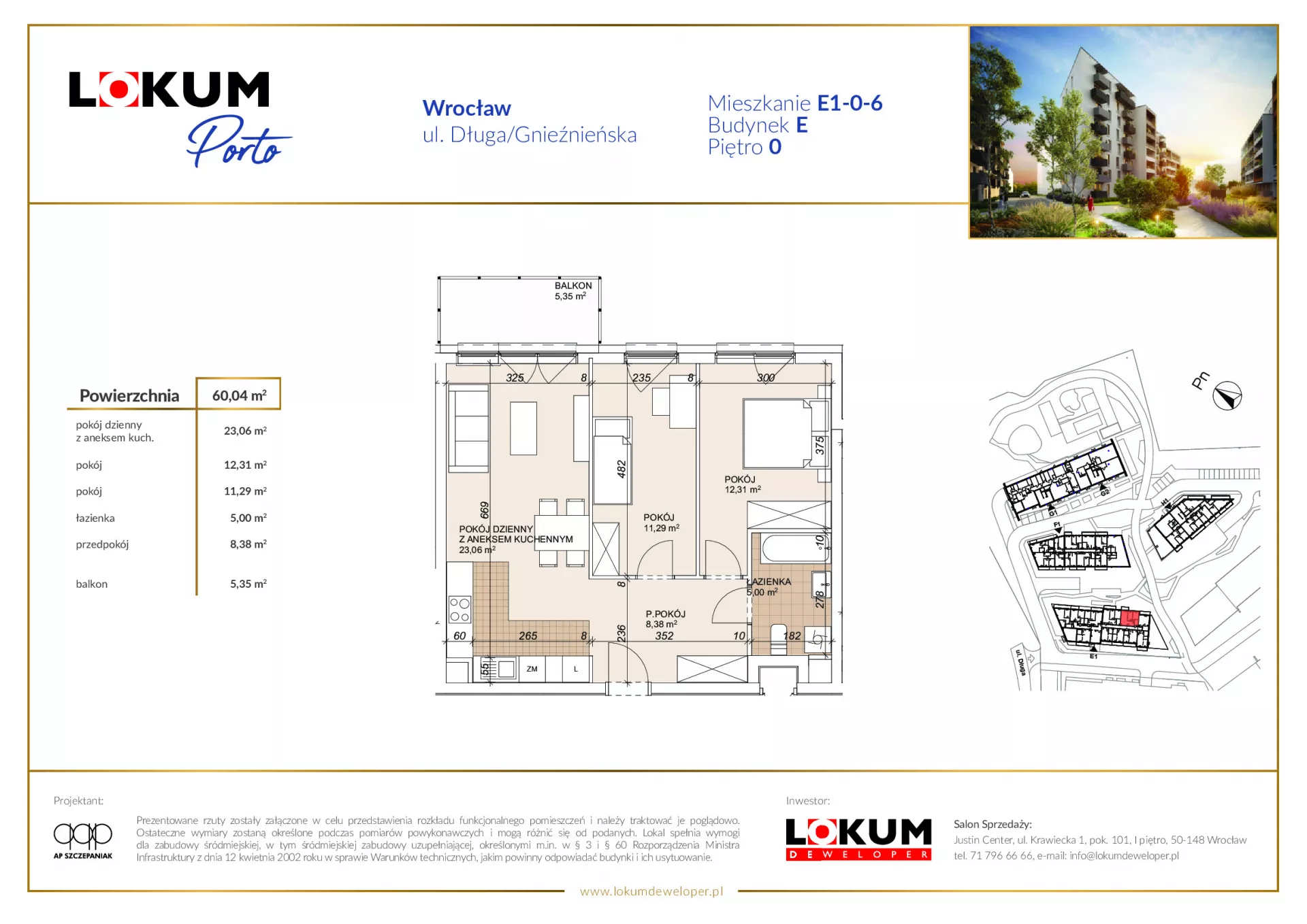 Udogodnienia: Plac zabaw, siłownia terenowa, ławki wraz ze organizowanymi miejscami wypoczynku dla mieszkańców. Przynależności: Wszystkie mieszkania posiadają balkon lub taras. Deweloper przewidział również komórki lokatorskie. Bezpieczeństwo: Drzwi antywłamaniowe, domofon. Wielkość Projektu: 66 mieszkań Garaże: W inwestycji będą dostępne miejsca postojowe. Komunikacja: Autobus 650 metrów, Tramwaj 1,3 km. Odległość od Centrum: 5,2 km