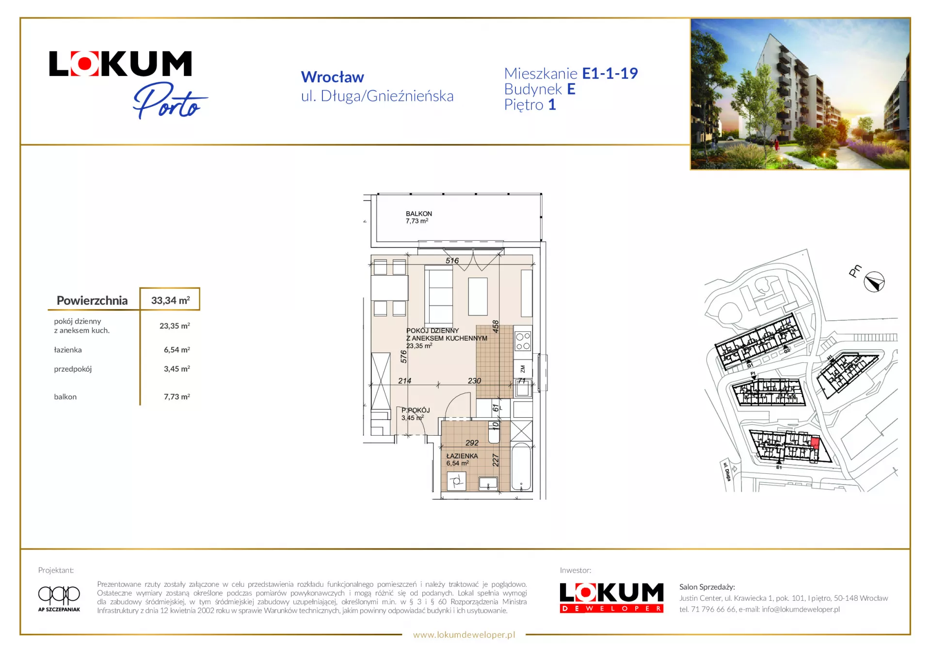 Udogodnienia: Plac zabaw, siłownia terenowa, ławki wraz ze organizowanymi miejscami wypoczynku dla mieszkańców. Przynależności: Wszystkie mieszkania posiadają balkon lub taras. Deweloper przewidział również komórki lokatorskie. Bezpieczeństwo: Drzwi antywłamaniowe, domofon. Wielkość Projektu: 66 mieszkań Garaże: W inwestycji będą dostępne miejsca postojowe. Komunikacja: Autobus 650 metrów, Tramwaj 1,3 km. Odległość od Centrum: 5,2 km