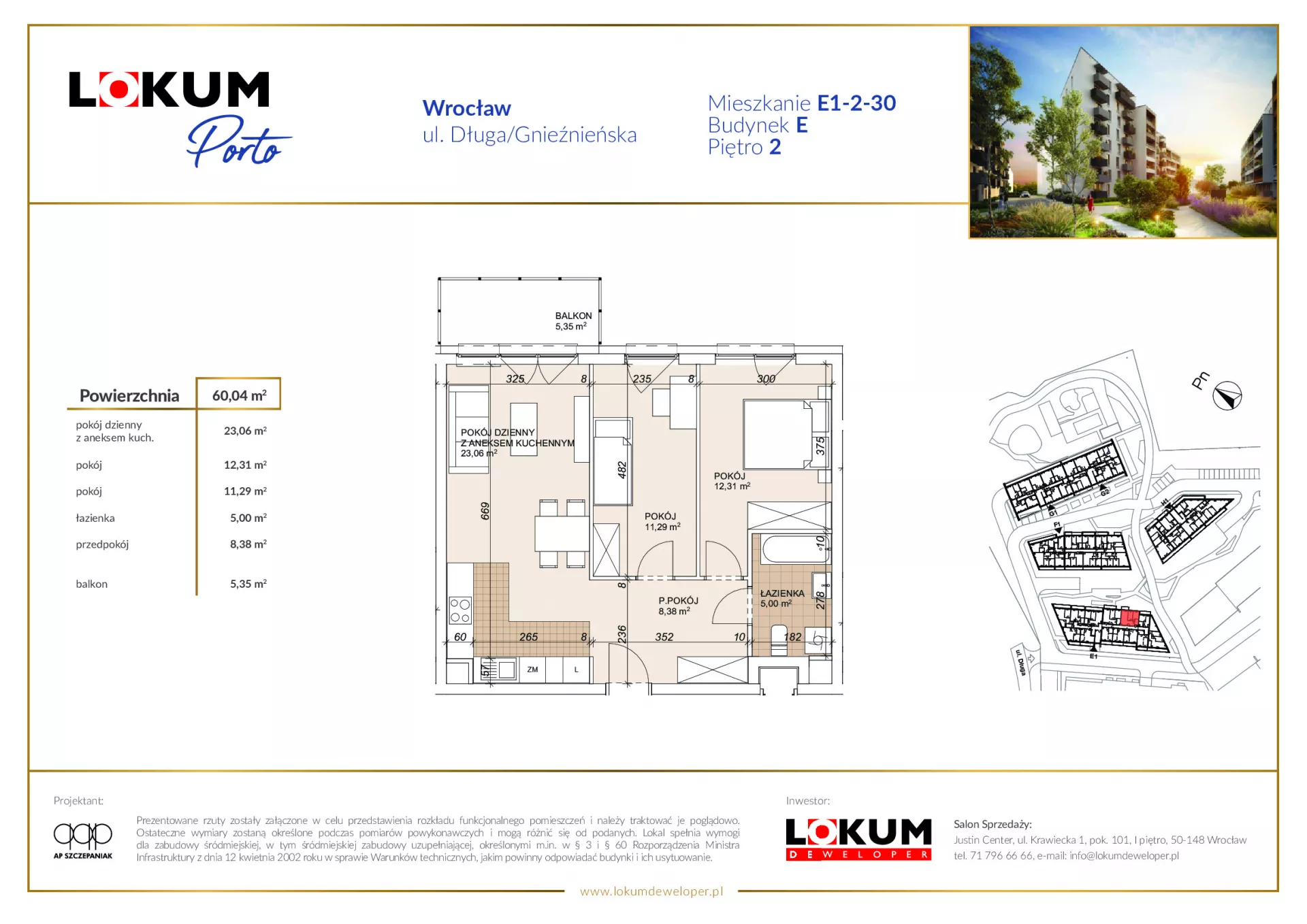 Udogodnienia: Plac zabaw, siłownia terenowa, ławki wraz ze organizowanymi miejscami wypoczynku dla mieszkańców. Przynależności: Wszystkie mieszkania posiadają balkon lub taras. Deweloper przewidział również komórki lokatorskie. Bezpieczeństwo: Drzwi antywłamaniowe, domofon. Wielkość Projektu: 66 mieszkań Garaże: W inwestycji będą dostępne miejsca postojowe. Komunikacja: Autobus 650 metrów, Tramwaj 1,3 km. Odległość od Centrum: 5,2 km