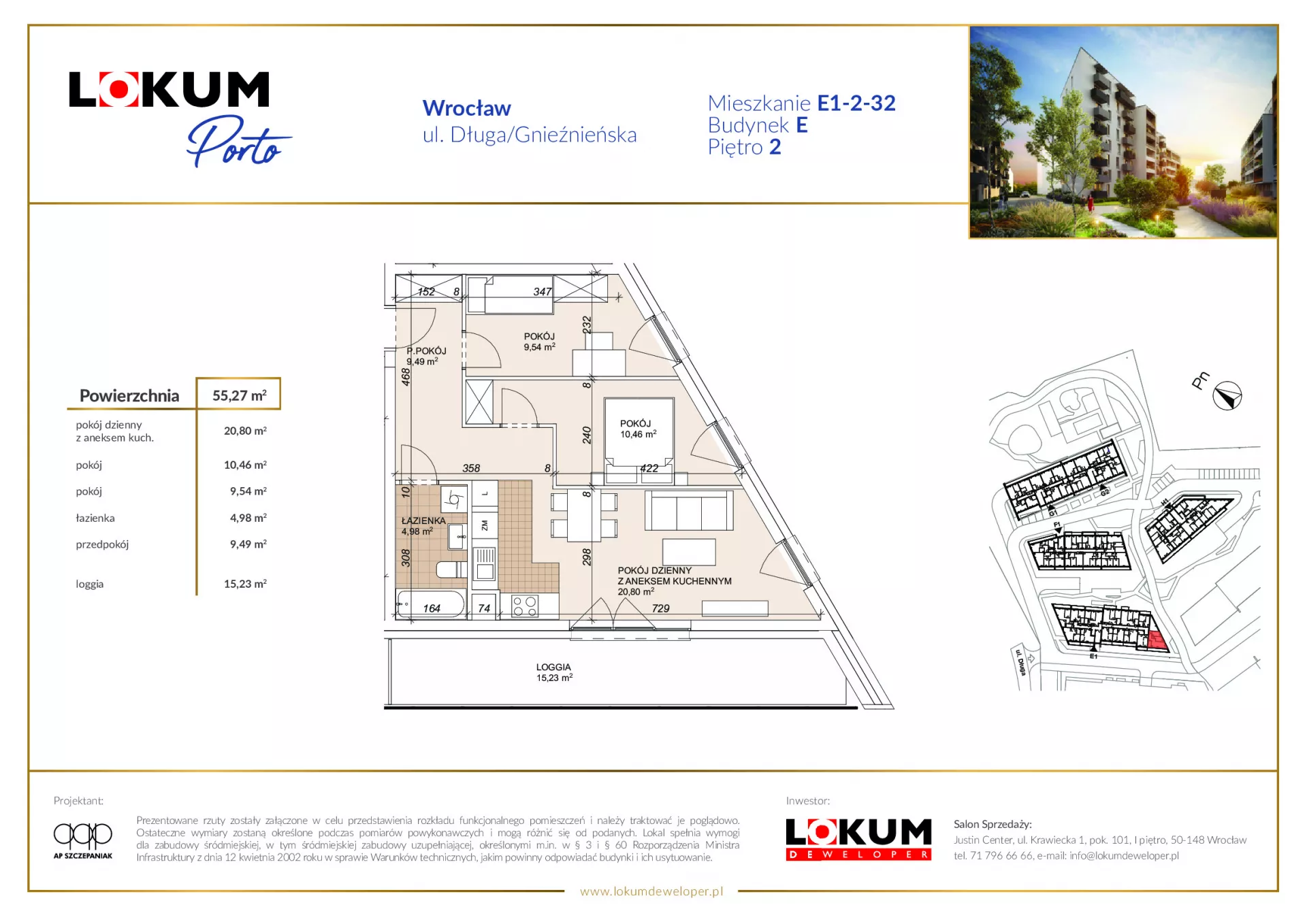 Udogodnienia: Plac zabaw, siłownia terenowa, ławki wraz ze organizowanymi miejscami wypoczynku dla mieszkańców. Przynależności: Wszystkie mieszkania posiadają balkon lub taras. Deweloper przewidział również komórki lokatorskie. Bezpieczeństwo: Drzwi antywłamaniowe, domofon. Wielkość Projektu: 66 mieszkań Garaże: W inwestycji będą dostępne miejsca postojowe. Komunikacja: Autobus 650 metrów, Tramwaj 1,3 km. Odległość od Centrum: 5,2 km