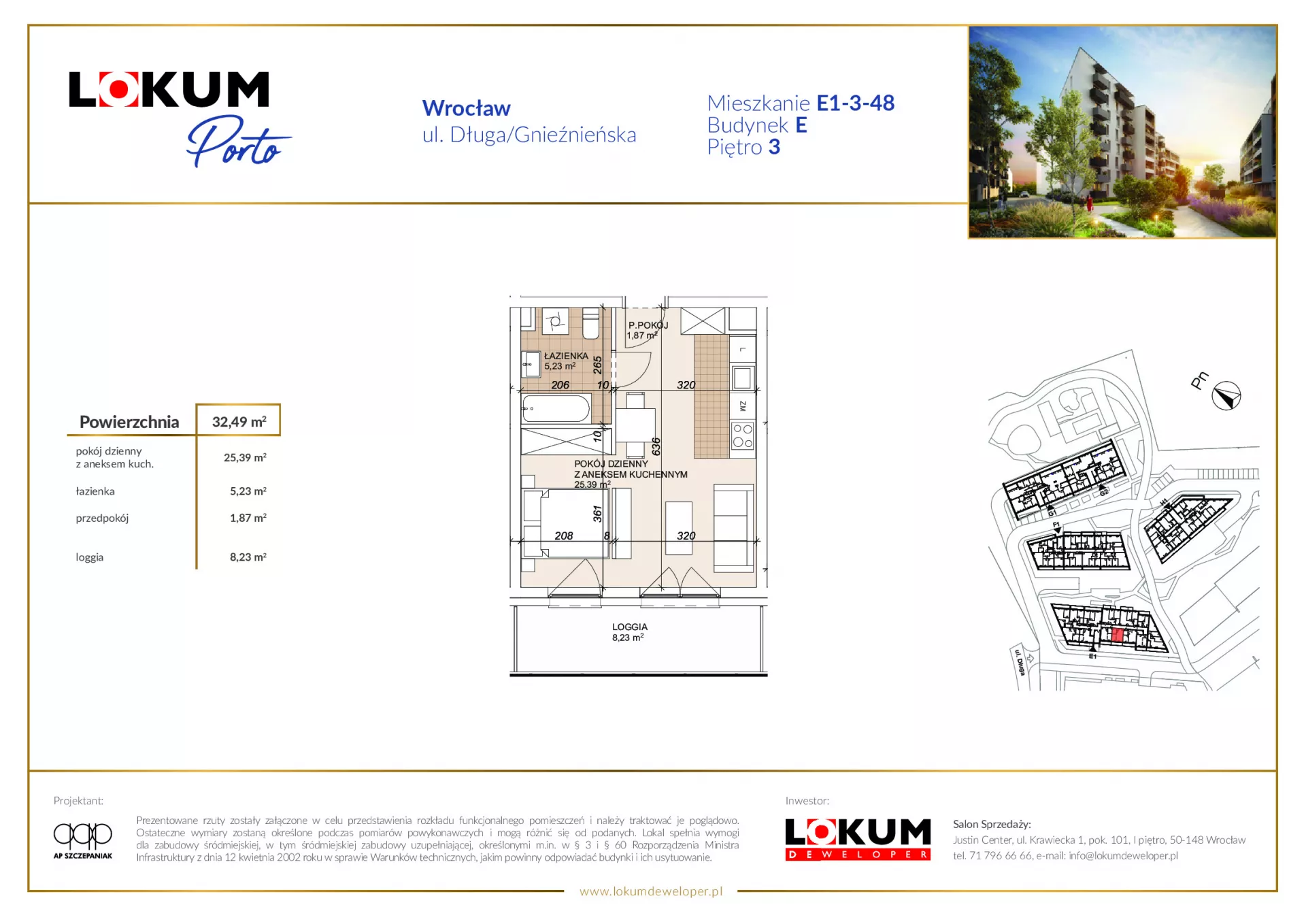 Udogodnienia: Plac zabaw, siłownia terenowa, ławki wraz ze organizowanymi miejscami wypoczynku dla mieszkańców. Przynależności: Wszystkie mieszkania posiadają balkon lub taras. Deweloper przewidział również komórki lokatorskie. Bezpieczeństwo: Drzwi antywłamaniowe, domofon. Wielkość Projektu: 66 mieszkań Garaże: W inwestycji będą dostępne miejsca postojowe. Komunikacja: Autobus 650 metrów, Tramwaj 1,3 km. Odległość od Centrum: 5,2 km
