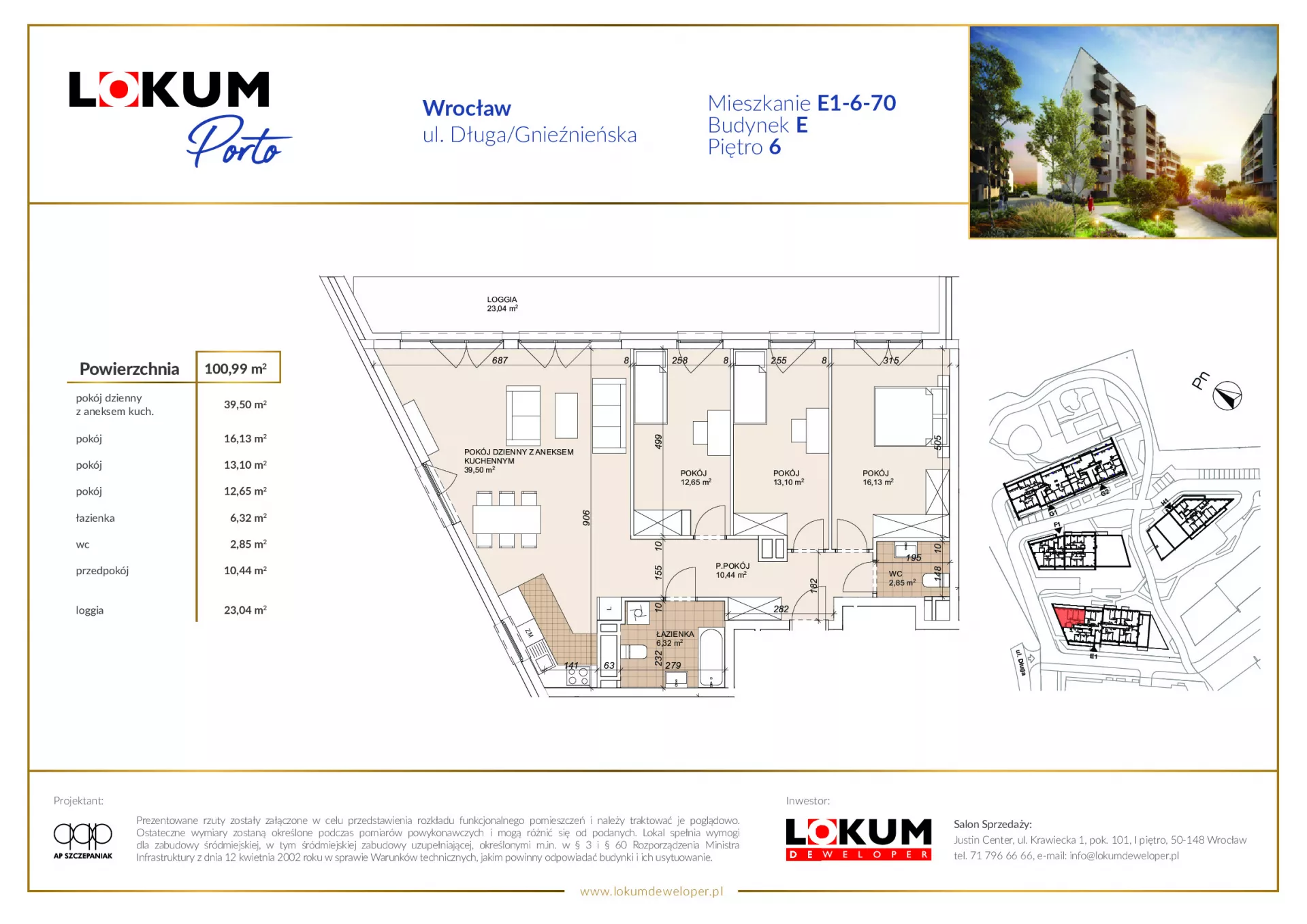 Udogodnienia: Plac zabaw, siłownia terenowa, ławki wraz ze organizowanymi miejscami wypoczynku dla mieszkańców. Przynależności: Wszystkie mieszkania posiadają balkon lub taras. Deweloper przewidział również komórki lokatorskie. Bezpieczeństwo: Drzwi antywłamaniowe, domofon. Wielkość Projektu: 66 mieszkań Garaże: W inwestycji będą dostępne miejsca postojowe. Komunikacja: Autobus 650 metrów, Tramwaj 1,3 km. Odległość od Centrum: 5,2 km