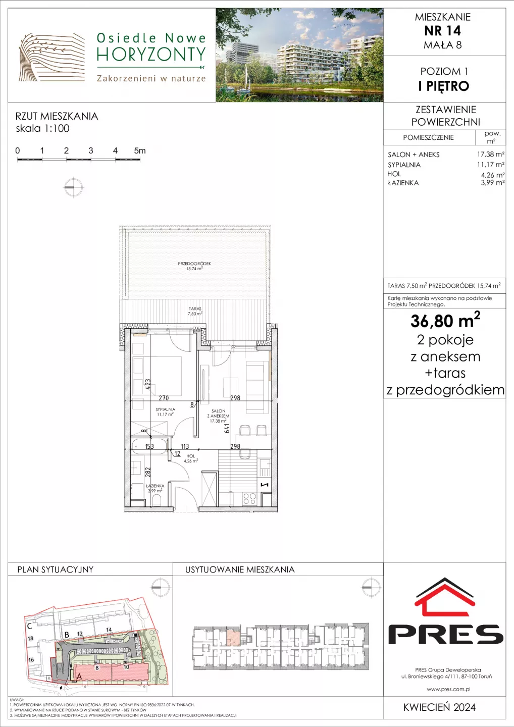 Udogodnienia: Nowe Horyzonty to innowacyjne rozwiązania m.in stacja zmiękczania wody, fotowoltaika na dachach zasilająca części wspólne, ekologiczne i automatyczne wykorzystanie wody deszczowej do podlewania, ograniczenie ruchu samochodowego na terenie osiedla (ok. 90% samochodów w halach garażowych podziemnych), stanowisko zewnętrzne do ładowania samochodów elektrycznych oraz możliwość doprowadzenia do każdego stanowiska instalacji do ładowania samochodów. Biedronka po drugiej stronie ulicy 207m, szkoła podstawowa, żłobek, przedszkole, park przy Balatonie, Fabryka Tańca.. Planowane prywatne przedszkole na terenie osiedla. Wyróżnik inwestycji: Lokalizacja blisko zieleni wraz z bulwarem tuż przy rzece Brdzie. Dobra okazja inwestycyjna pod najem długo-, jak i krótkoterminowy. Przynależności: Wózkownie, komórki i schowki. Balkon w każdym mieszkaniu. Tarasy i ogródki. Siłownia na świeżym powietrzu, tężnia solankowa. Docelowo ma być boisko Orlik (koszykówka, piłka nożna).Altany wraz z grillem. Górka saneczkowa. Zielony tunel. Naturalny plac zabaw. Bezpieczeństwo: Drzwi antywłamaniowe o podwyższonej izolacji akustycznej. Wideodomofony, monitoring zewnętrzny i hali garażowej.. Wielkość Projektu: 3 budynki wielorodzinne 7-piętrowe. I etap 149 mieszkań. Komórki lokatorskie. Garaże: Na terenie inwestycji powstaną 32 naziemne i 78 podziemne miejsca postojowe. Komunikacja: W pobliżu projektu znajdują się bardzo blisko przystanki autobusowe i tramwajowe. Dworzec PKS 4km, PKP Bydgoszcz Główna 5,2km Odległość od Centrum: 3,4km (ok. 6min samochodem). Szczegóły: Wysokość pomieszczeń 2,65m. Standard deweloperski.