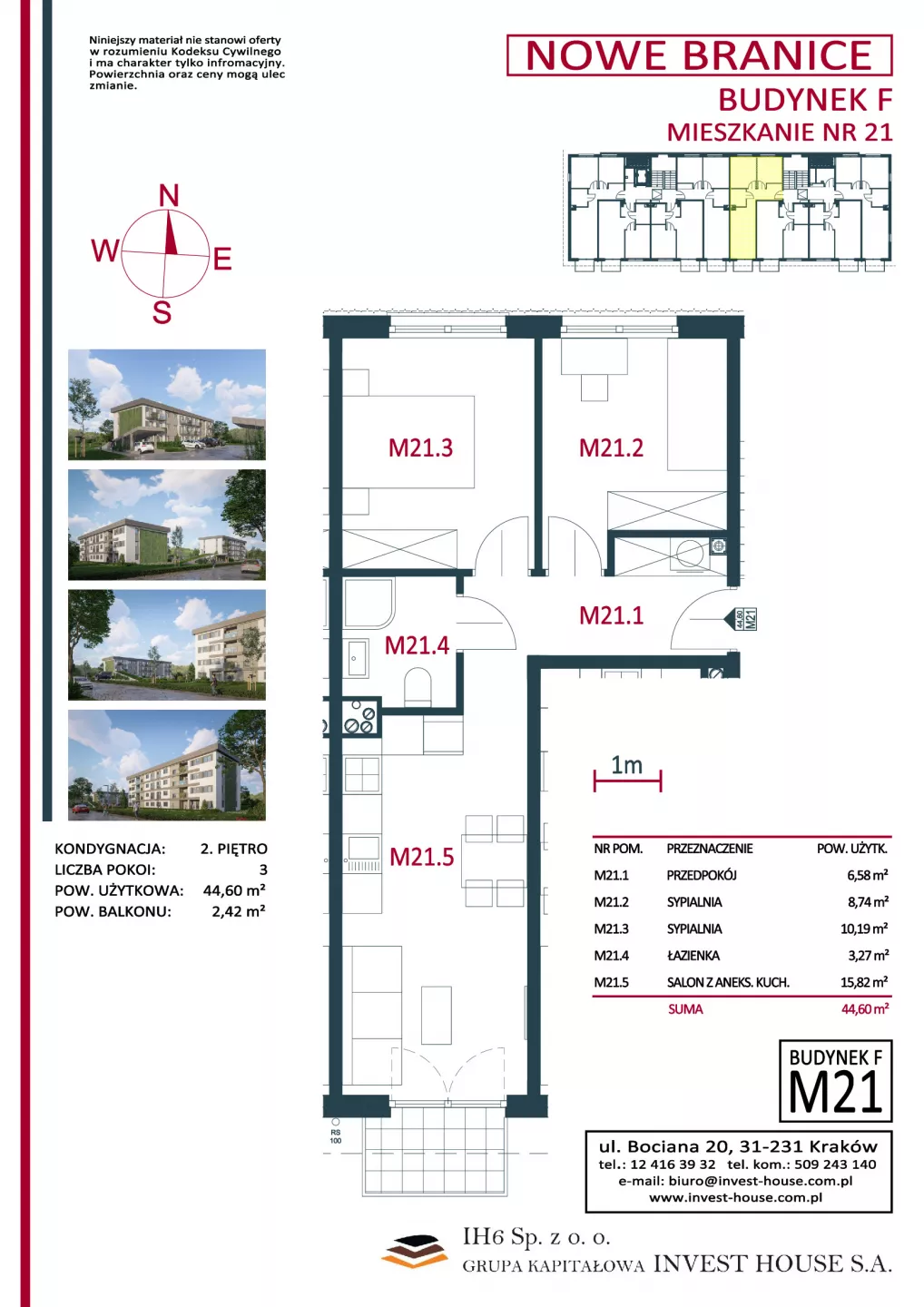 Udogodnienia: Na terenie inwestycji znajduje się winda, a sam budynek jest wybudowany w stylu nowoczesnym. Projekt jest otoczony terenami zielonymi. W pobliżu pojedyncze obiekty usługowe, stacja paliw, w odległości ok. 350 m przebiega ulica Igołomska stanowiąca część drogi krajowej nr 79; dostępność komunikacji miejskiej – przystanek autobusowy znajduje się w odległości ok. 300 m., umożliwiający mieszkańcom dogodny dojazd do pracy, szkoły czy centrum. Dodatkowym atutem tej inwestycji jest planowana budowa północnej obwodnicy miasta, przebiegająca nieopodal inwestycji, co pozwoli na jeszcze szybszą komunikację w dowolnym kierunku. Droga do centrum Krakowa 16,2 km. Przynależności: balkon, ogródek, miejsce postojowe Wielkość Projektu: 32 mieszkania Garaże: Deweloper przewidział 25 stanowisk w garażu podziemnym dla mieszkańców inwestycji. Komunikacja: Autobus 600 m Odległość od Centrum: 16,2 km