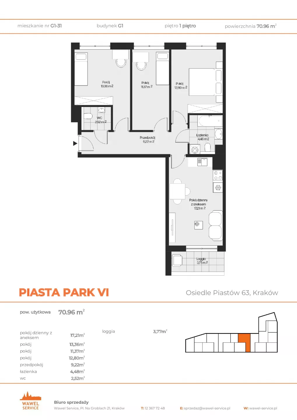 Udogodnienia: rowerownia, wózkownia, nowoczesna architektura, tereny zielone - Planty Mistrzejowickie, blisko komunikacji i centrum; w pobliżu znajduje się pełna infrastruktura - przedszkola; szkoły; galerie handlowe i punkty usługowe; restauracje; obiekty sportowe i rekreacyjne, cicha i spokojna okolica Przynależności: ogródek, loggia, komórka lokatorska Bezpieczeństwo: drzwi antywłamaniowe, domofon Wielkość Projektu: 118 mieszkań Garaże: Na terenie inwestycji znajduje się 83 miejsc postojowych w garażu i 2 miejsca postojowe naziemne Komunikacja: pętla autobusowa 100 m, tramwaj 400 m, stacja kolejowa 1,2 km Odległość od Centrum: 8,4 km