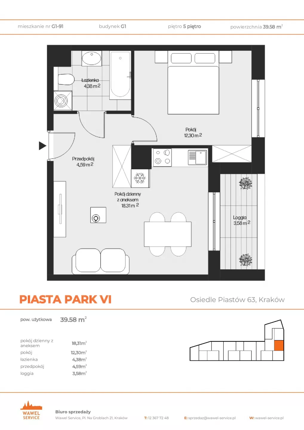 Udogodnienia: rowerownia, wózkownia, nowoczesna architektura, tereny zielone - Planty Mistrzejowickie, blisko komunikacji i centrum; w pobliżu znajduje się pełna infrastruktura - przedszkola; szkoły; galerie handlowe i punkty usługowe; restauracje; obiekty sportowe i rekreacyjne, cicha i spokojna okolica Przynależności: ogródek, loggia, komórka lokatorska Bezpieczeństwo: drzwi antywłamaniowe, domofon Wielkość Projektu: 118 mieszkań Garaże: Na terenie inwestycji znajduje się 83 miejsc postojowych w garażu i 2 miejsca postojowe naziemne Komunikacja: pętla autobusowa 100 m, tramwaj 400 m, stacja kolejowa 1,2 km Odległość od Centrum: 8,4 km