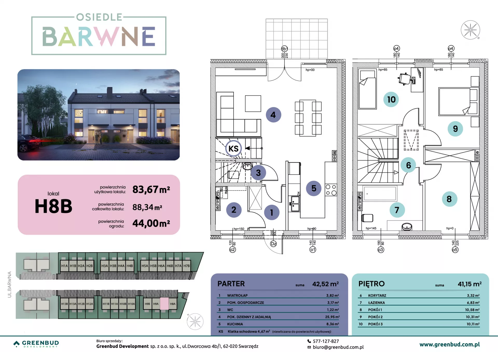 Udogodnienia: pełna infrastruktura osiedla, zielona przestrzeń, świetne połączenie z Poznaniem, blisko komunikacji miejskiej, cicha i spokojna okolica